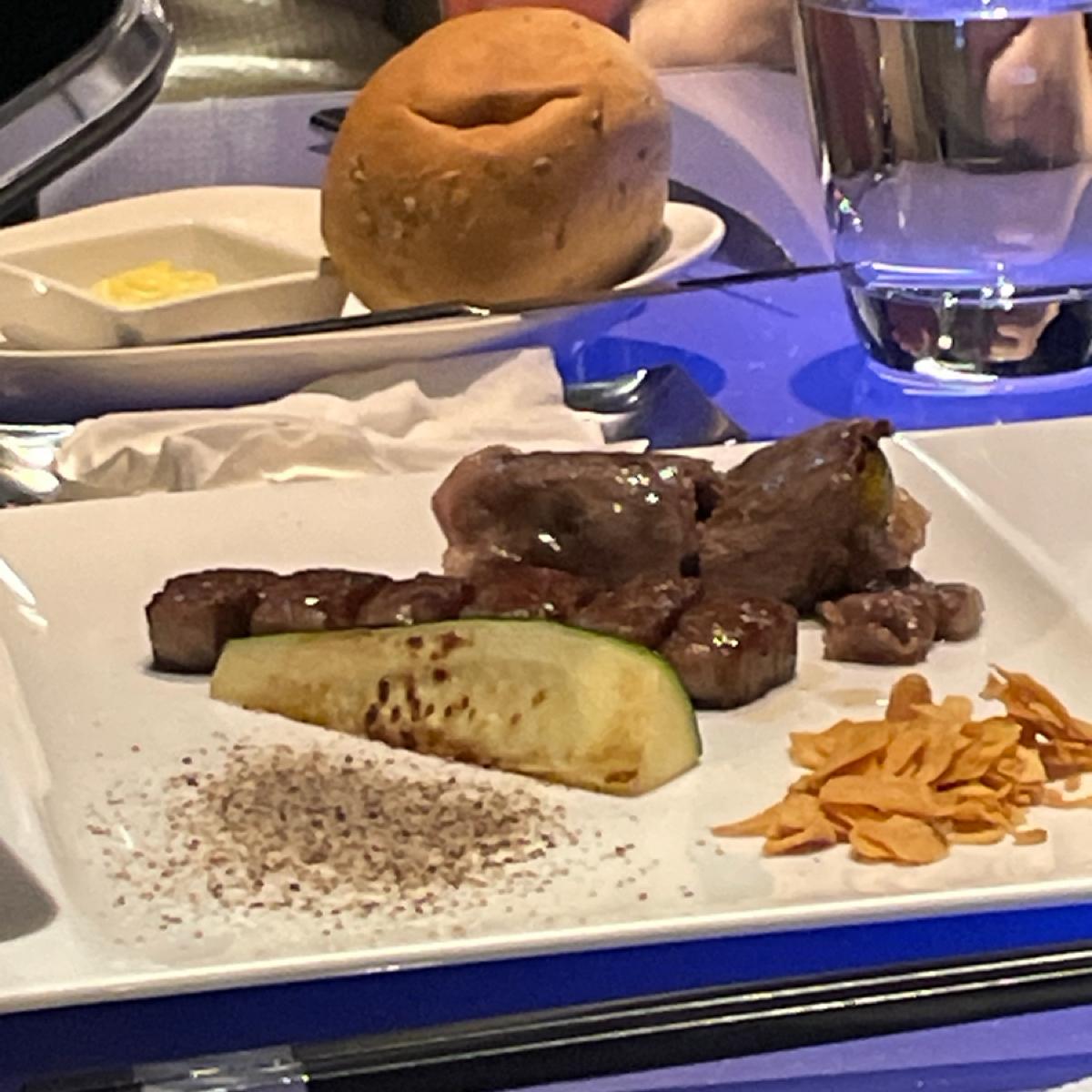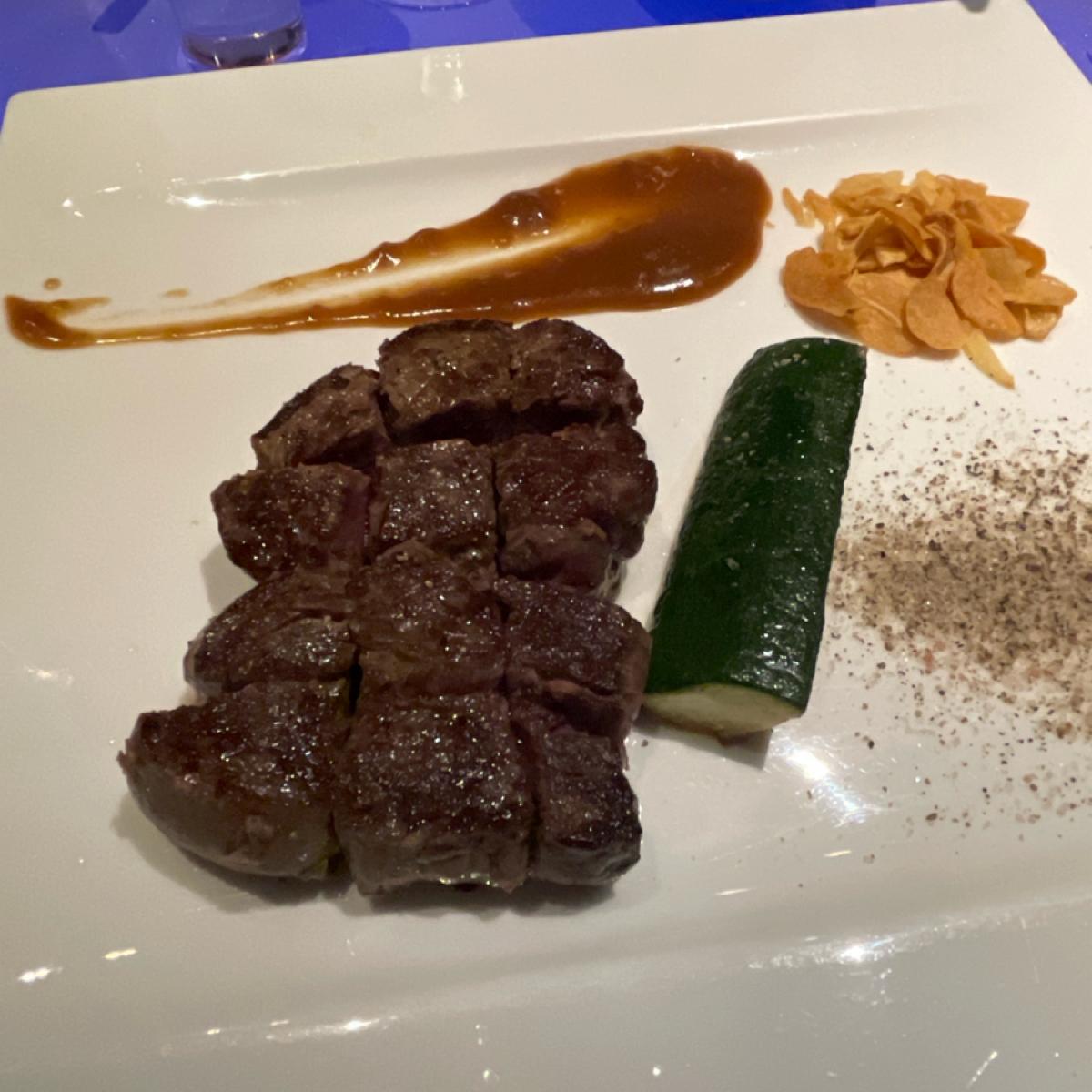 套餐分為兩種,以有海鮮與否來區分,我點了無海鮮的巴黎鐵板套餐-菲力牛排(五分熟),吃起來口感ok,還試吃家人的和牛蠻軟嫩。
