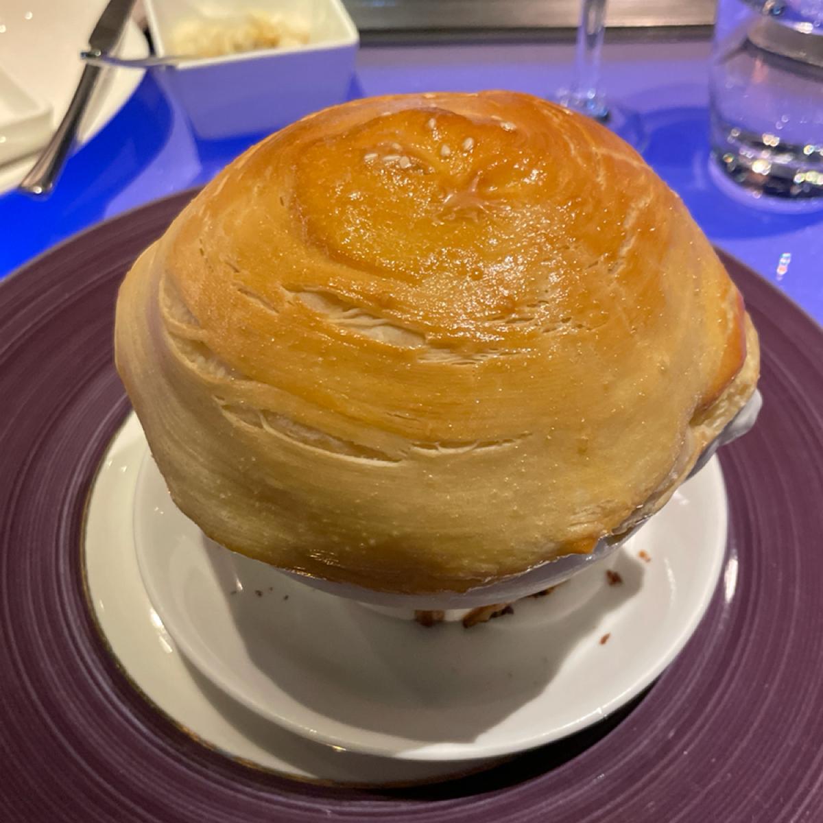 玫瑰荔枝蘋果醋飲還不錯,但他們的洛神花冰沙就不太合我胃口,麵包是蔓越莓口味比較不是我的菜,松露蒸蛋我蠻喜歡,我有加價點松露酥皮海鮮巧達湯,我覺得還不錯,吃起來蠻鮮的,還另外加點生蠔,呈現跟想像的不太一樣,但吃起來還可以。