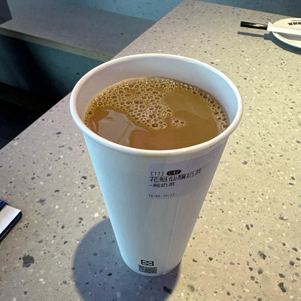 ✅花魁仙釀奶茶:奶茶有著濃郁花香,甜度不能調整。喝久了蠻類似阿薩姆奶茶的味道。(平常喝微糖或無糖的人會覺得非常甜膩)