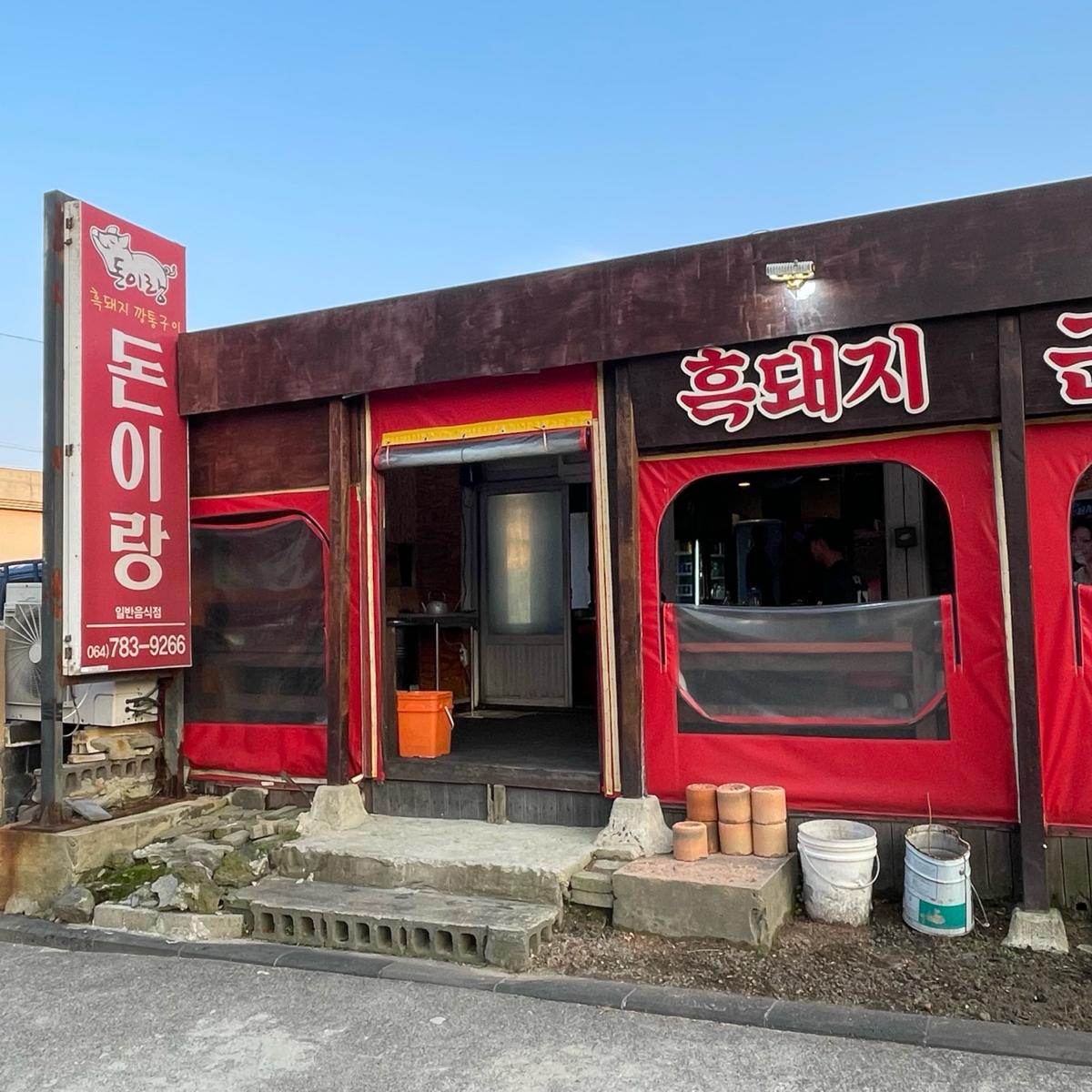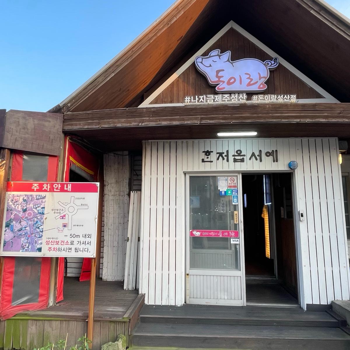 「돈이랑 성산점 / Donirang 城山分店」是位在濟州島東邊城山日出峰附近的燒烤店,我忘記是在哪個blog看到有人介紹這家店,所以就安排來這裡吃濟州島有名的黑豬肉了!