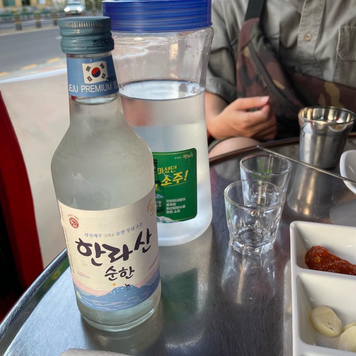 至於飲料,這邊也有很多酒類可以挑選,我們點了店員推薦說最多人會點的漢拏山燒酒,但我們覺得喝起來像味道很淡的高粱,所以其實覺得還好,沒有很喜歡