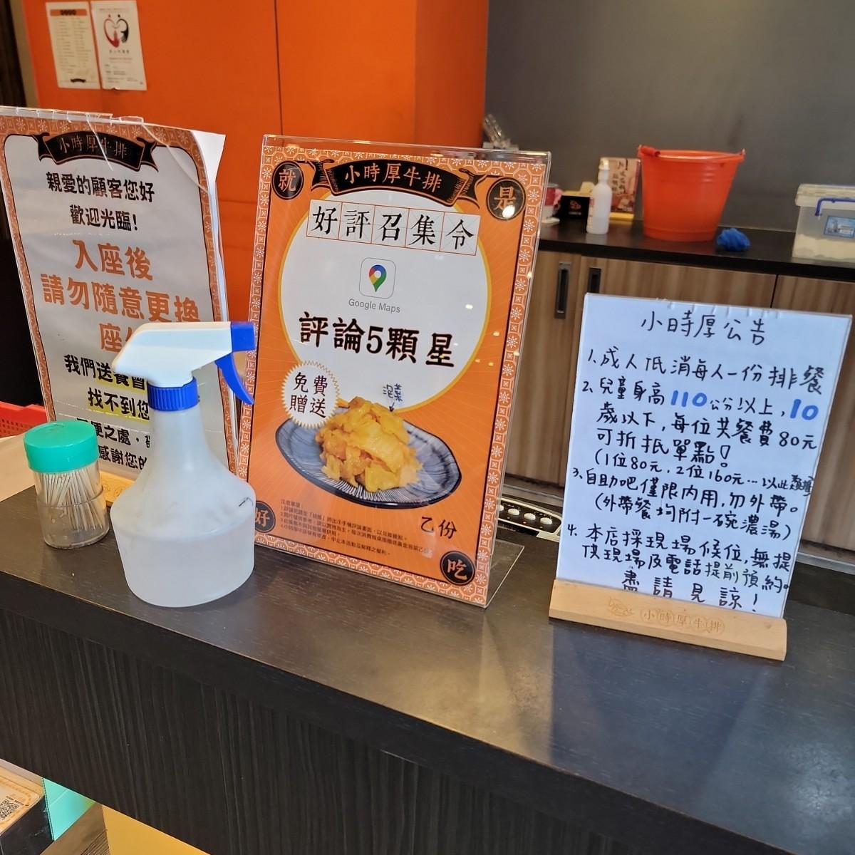 小時厚牛排 $220 ,預設蘑菇醬,黑胡椒在自助區可自行使用。點餐採用桌面QR CODE點餐,點餐後到自助結帳機結帳才會出餐。