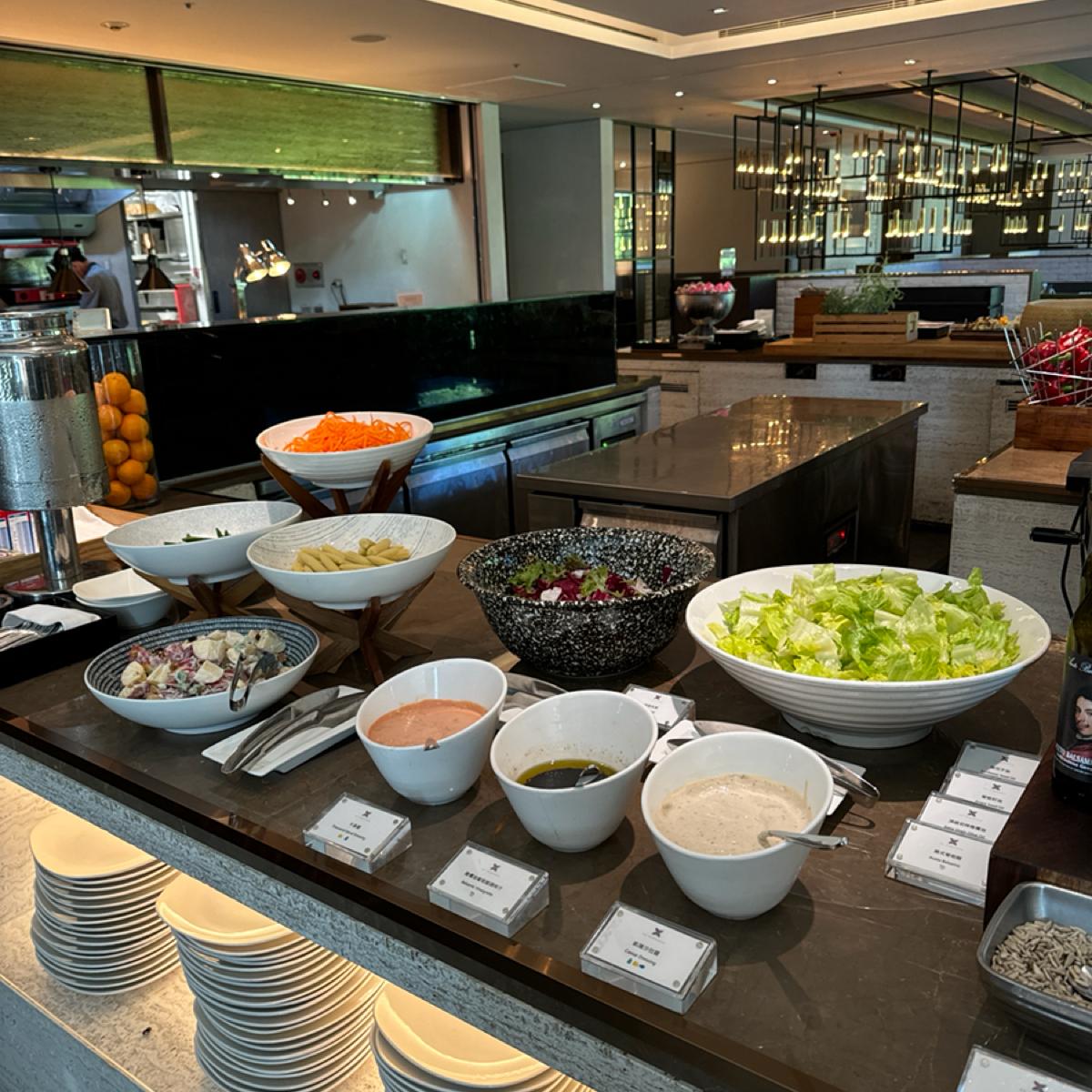 除了早餐是全自助的之外,午餐、下午茶、晚餐是點餐為主,並有半自助的沙拉吧可以享用