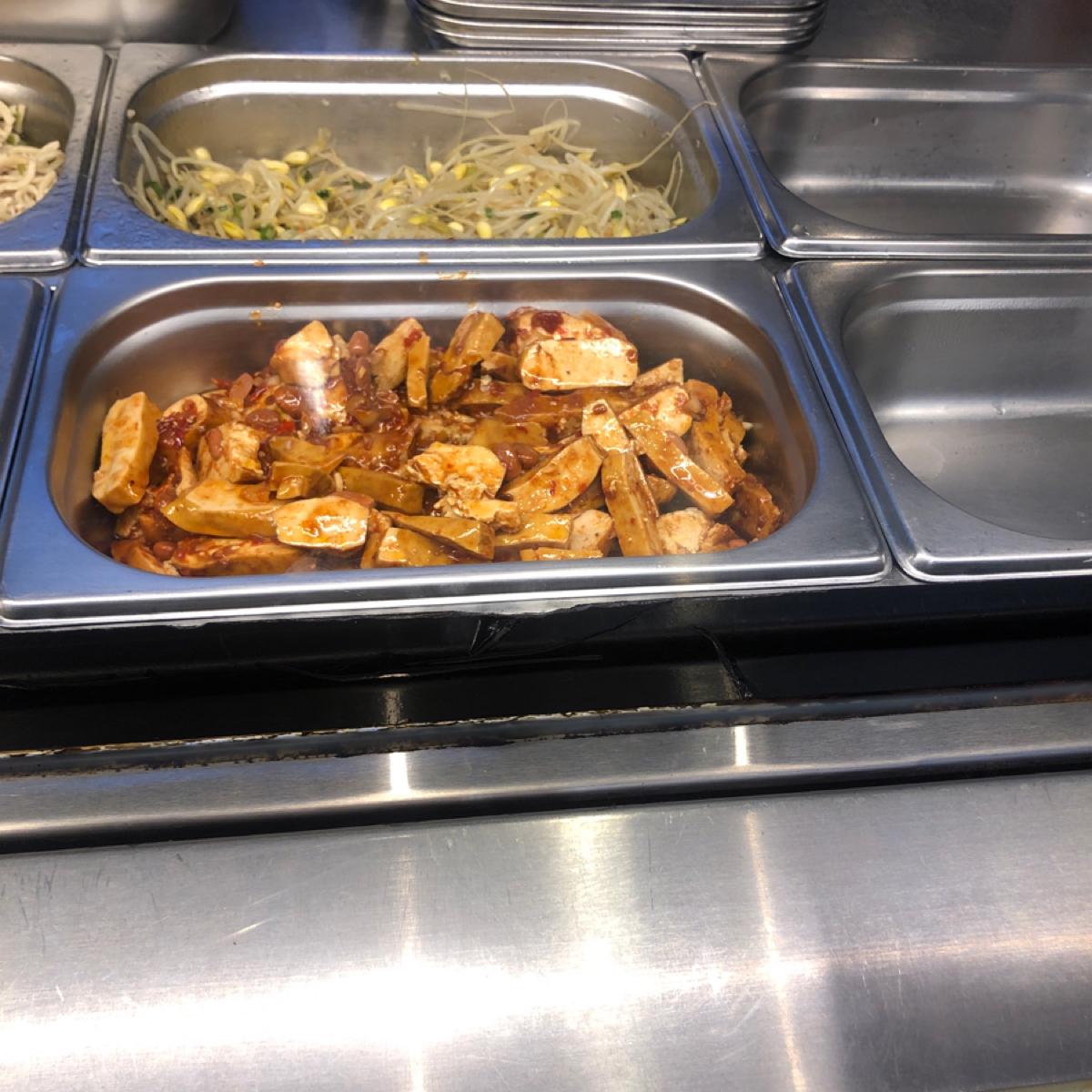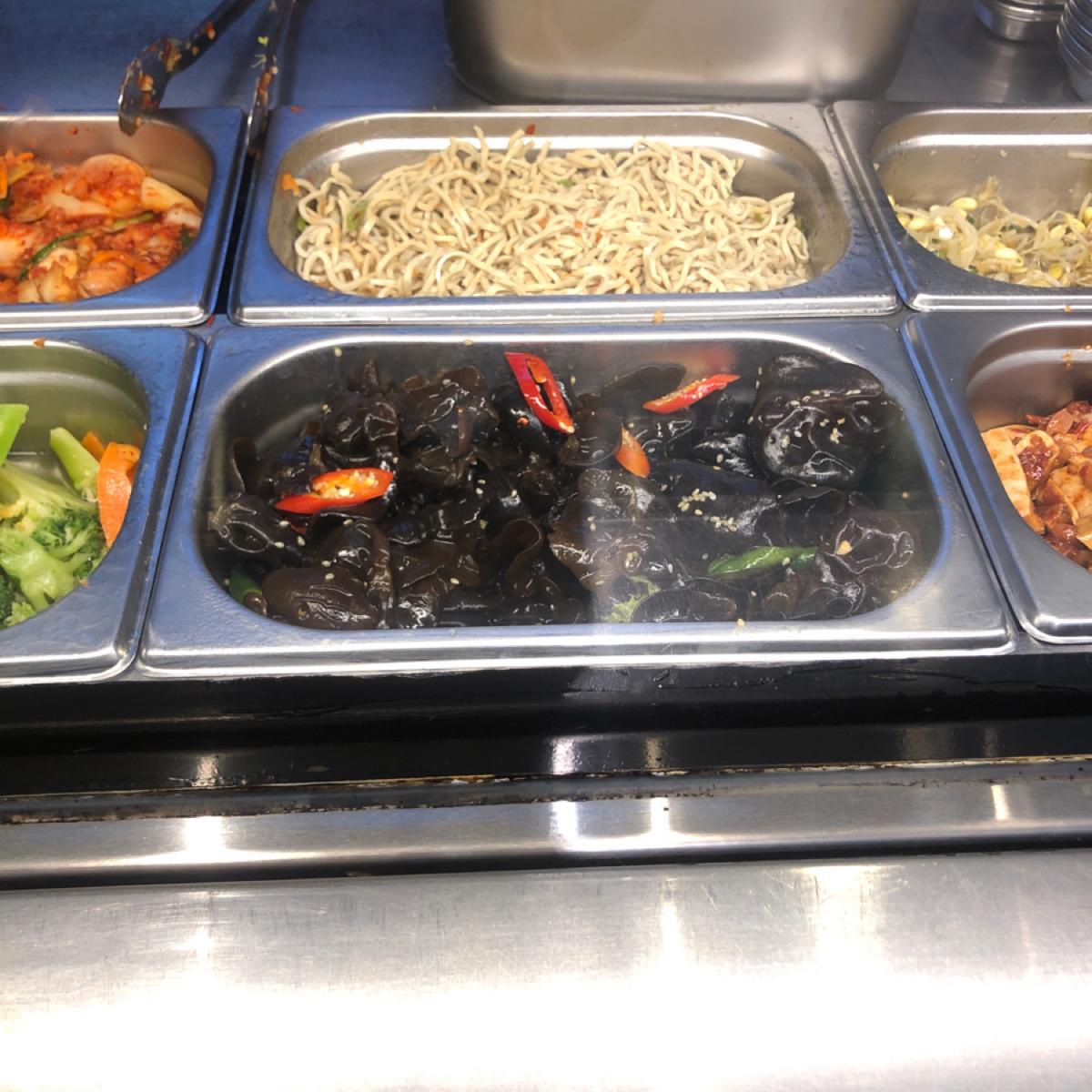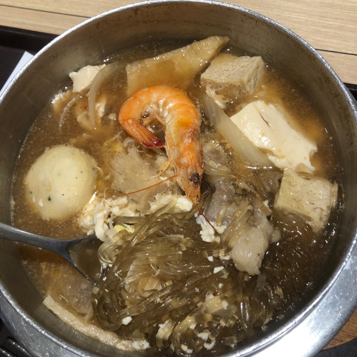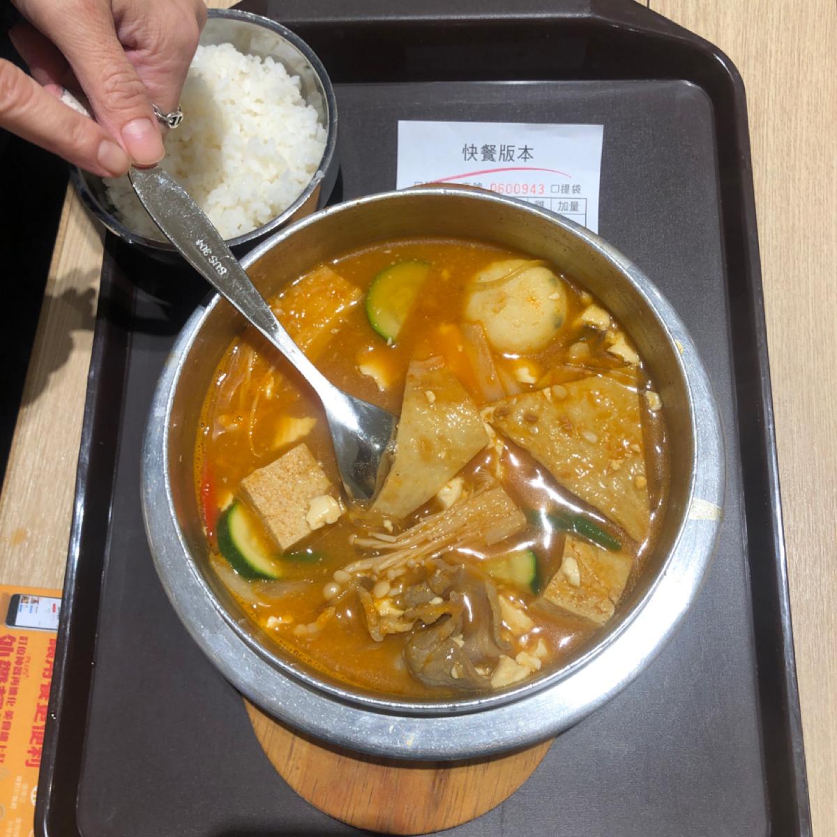 台中新光三越12樓美食街有許多選項,冬天吃微辣的韓式料理是一種享受。因為菜單上的銅盤烤肉囿於器具關係必須在店內使用,其他都可以在美食街自己找位置坐。 跟朋友分別點了大醬湯飯與韓式海鮮豆腐飯,大醬湯微辣口感較醇厚,海鮮豆腐不辣而湯頭清淡,裡面所附的冬粉口感Q彈不爛,其他所附的火鍋料、魚板普通,豆腐軟而嫩,海鮮大致上有蝦子1隻(要自己剝殼)、蛤蜊3、4個跟幾塊小花枝,另搭配1片豬肉,整體上來說價格還算實惠。