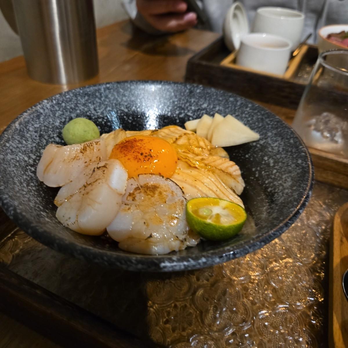 炙燒干貝鮭魚丼 $430