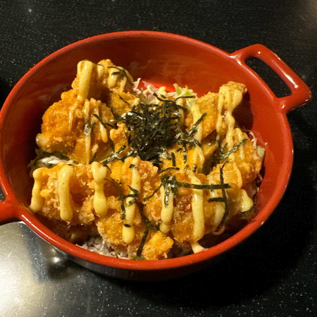 -和風炸雞-炸雞不太像日式的,不過屬於皮薄很酥脆,皮與肉不會分離。肉大概比一般鹹酥雞大塊一點,可以吃到肉感,沾醬是酸酸甜甜的味道,冷掉比較偏油膩一點。