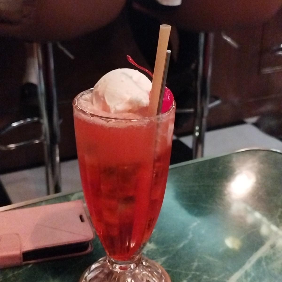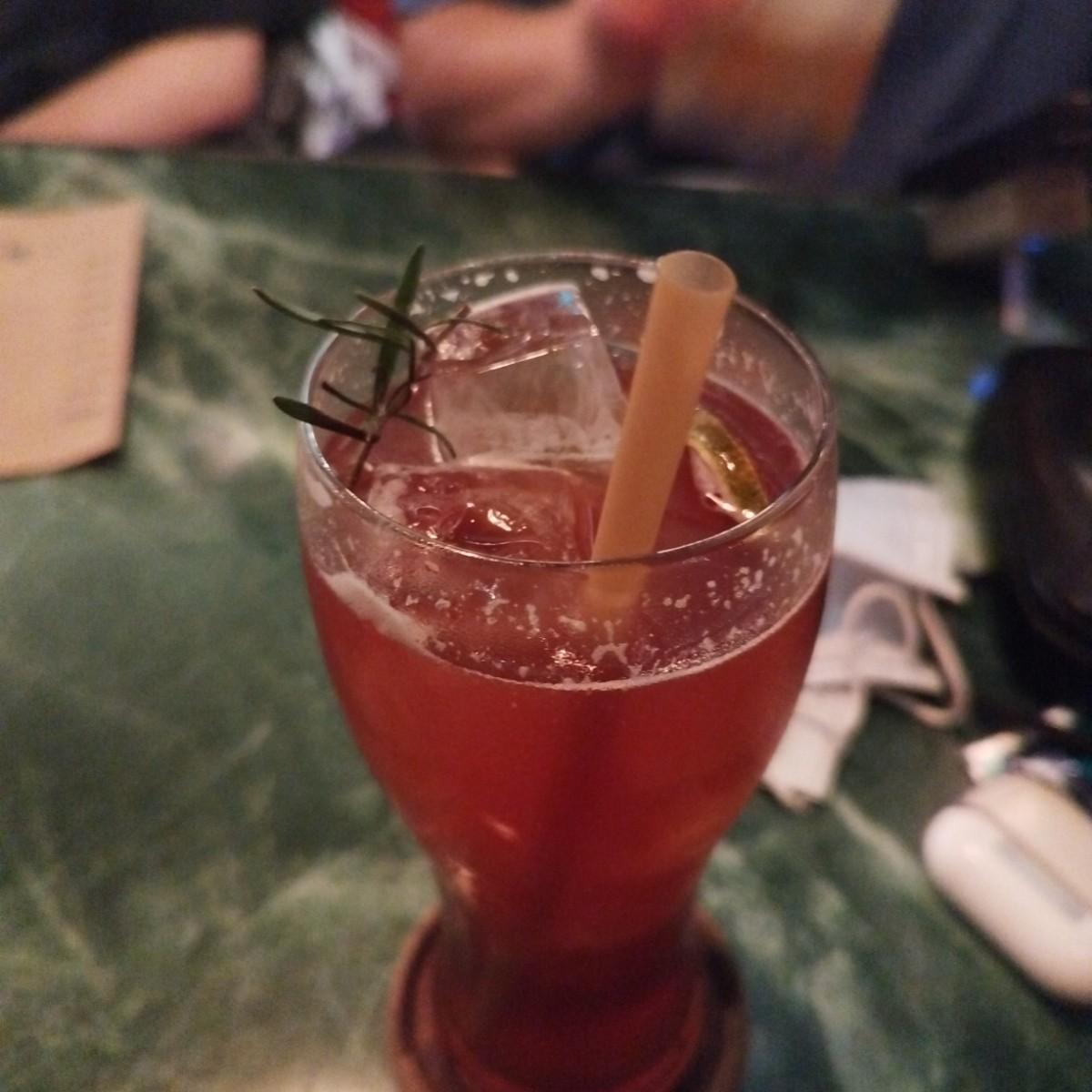 叢林鳥,一開始我是被名字吸引注意力才點的,意外的不錯喝,以我個人感覺是偏甜一點,喝起來沒有太多酒味,會不小心一口接一口喝下去,意識到喝完的時候我的頭也暈了,這時我問了這杯酒的酒精濃度,才知道原來這麼沒有酒味的一杯叢林鳥居然有著20%左右的酒精濃度🤣