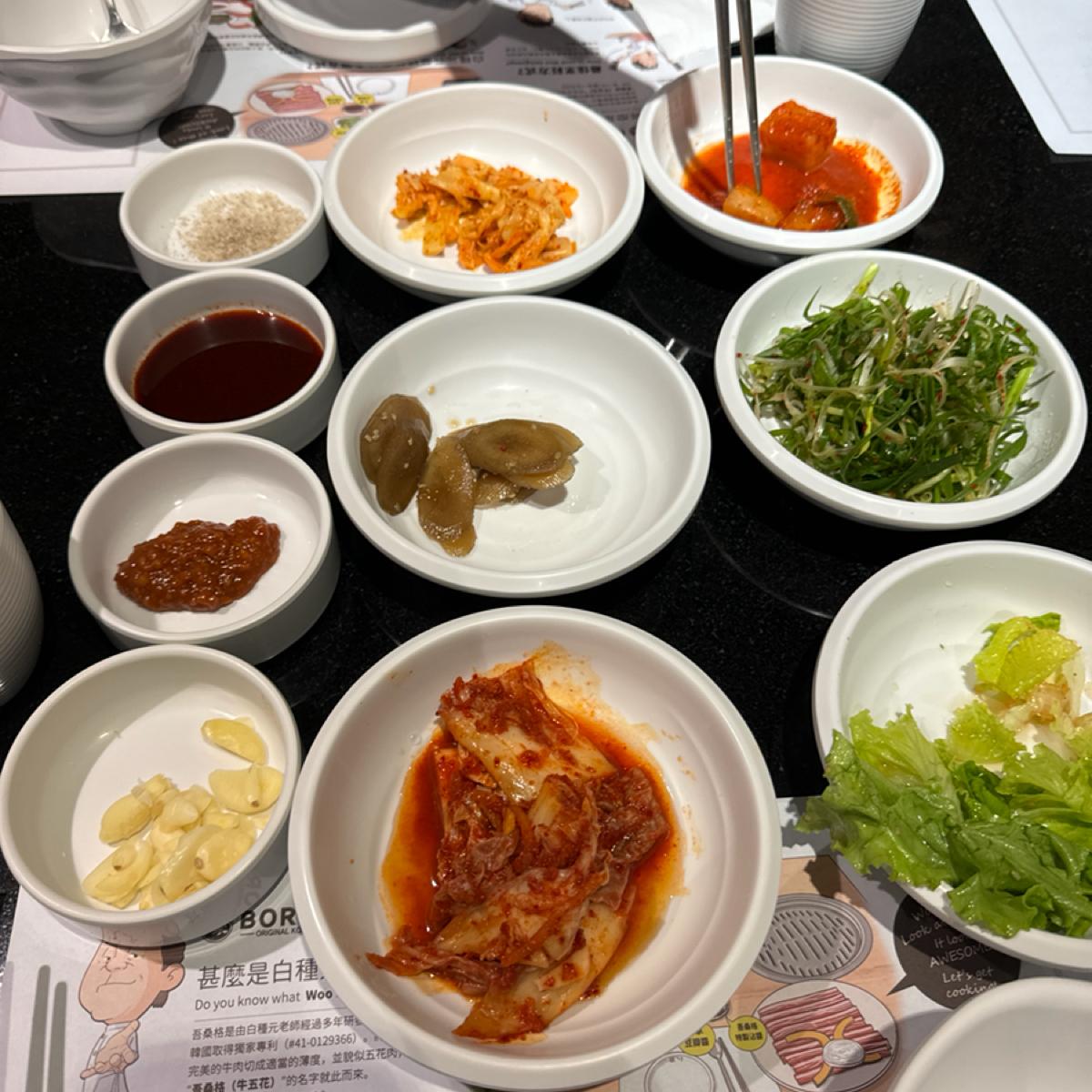 優點是小菜給的很大方也很快速~服務人員態度好。 不過不是所有肉都是店員烤,「比較簡單」的肉如五花肉、蜂巢五花都需要自己烤,其實蠻忙不過來的🤣 而且價位偏中高,聽到要自己烤大家都⋯啊⋯蛤⋯
