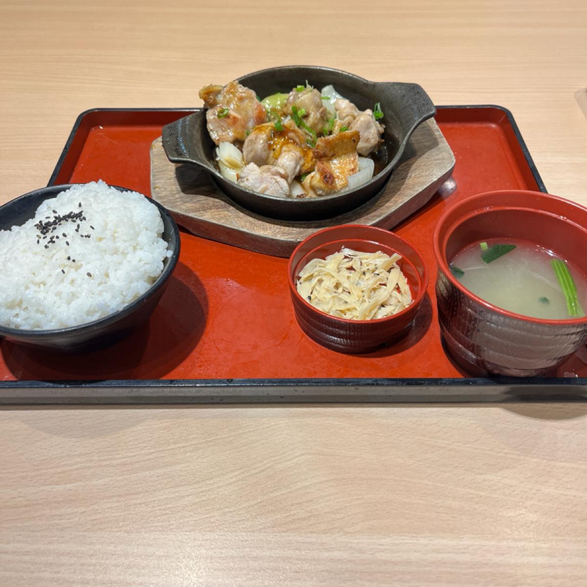 雞肉放在鐵盤上,底部鋪有洋蔥。雞肉軟嫩無腥味鹹度尚可,算是中規中矩的一份定食。