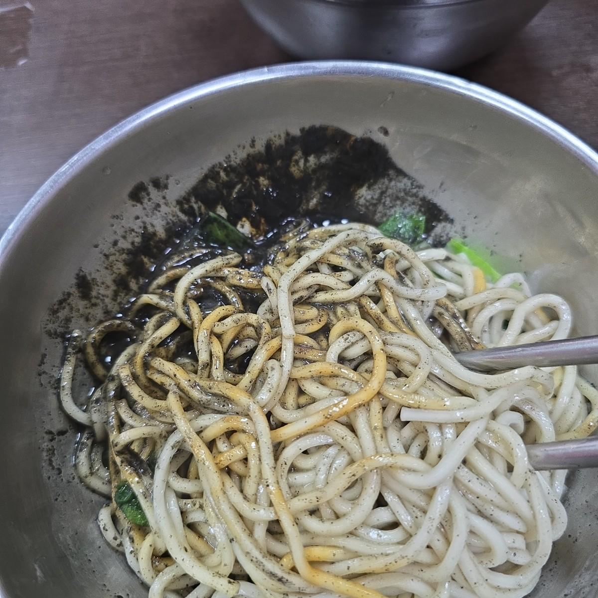 黑芝麻醬濃稠地鋪在碗內,拌勻後,芝麻的濃厚堅果香氣,讓每一口都帶著微微的甘甜。