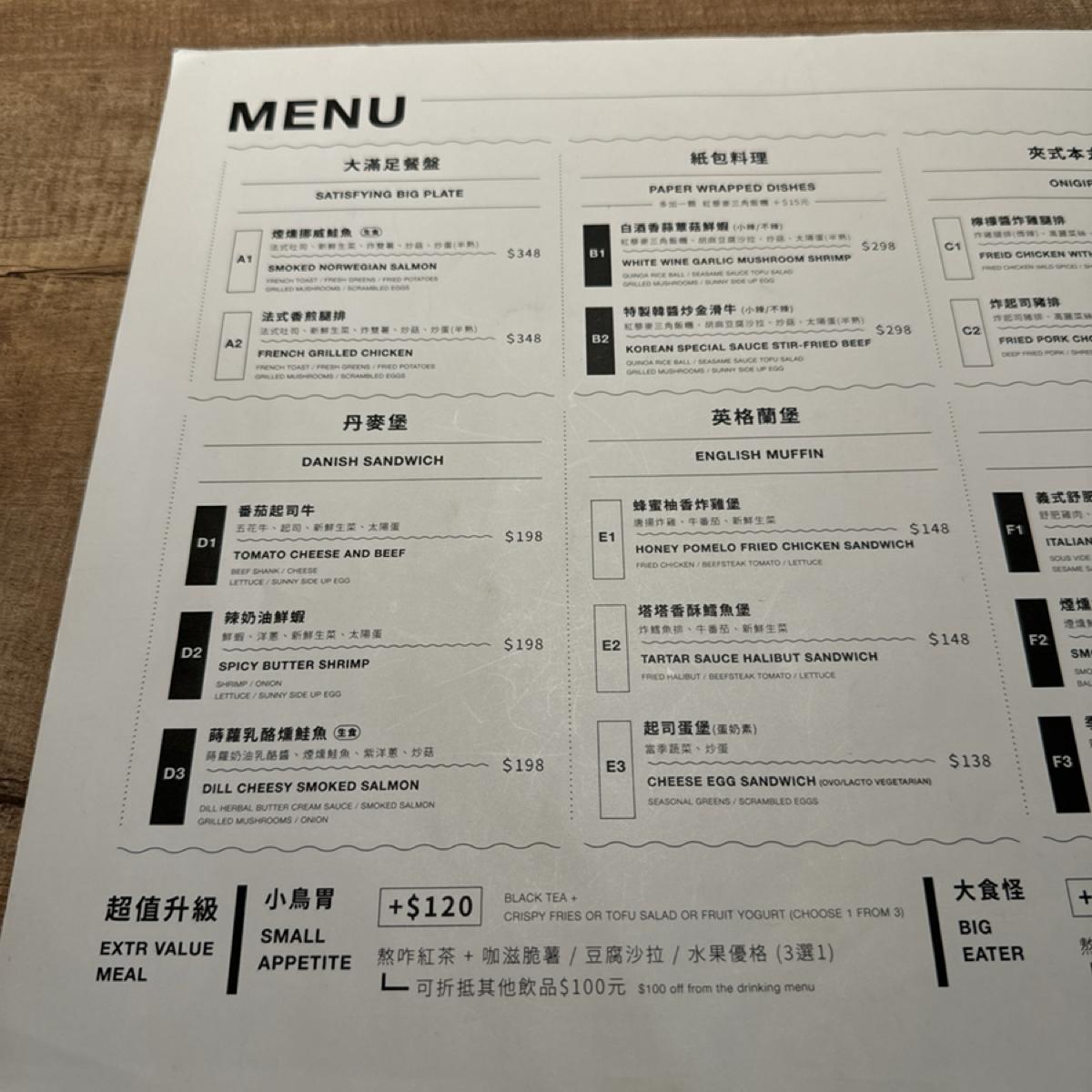 《環境》工業風的內部裝潢很適合拍照,內用區有一樓和二樓,個人建議要麻早點前往要麻要早點訂位,因為生意真的很好~ 《餐點》 📍輕享早餐盤💰268 簡單說就是蔬食拼盤,法國吐司軟嫩超好吃的啦,炒菇也很夠味,吃完不會太飽剛剛好~ 📍蜂蜜柚香炸雞堡💰168 這個我覺得比較普通,唐揚雞四塊吃完肉就會有點空虛~ 📍小鳥胃套餐💰150 飲料紅茶或是折抵100,脆薯、豆腐沙拉、水果沙拉三選一~ 《停車》 店家沒有特約停車場🅿️但有很多收費停車場,運氣好一點可以停放在停車格~ 《支付方式》 現金💵