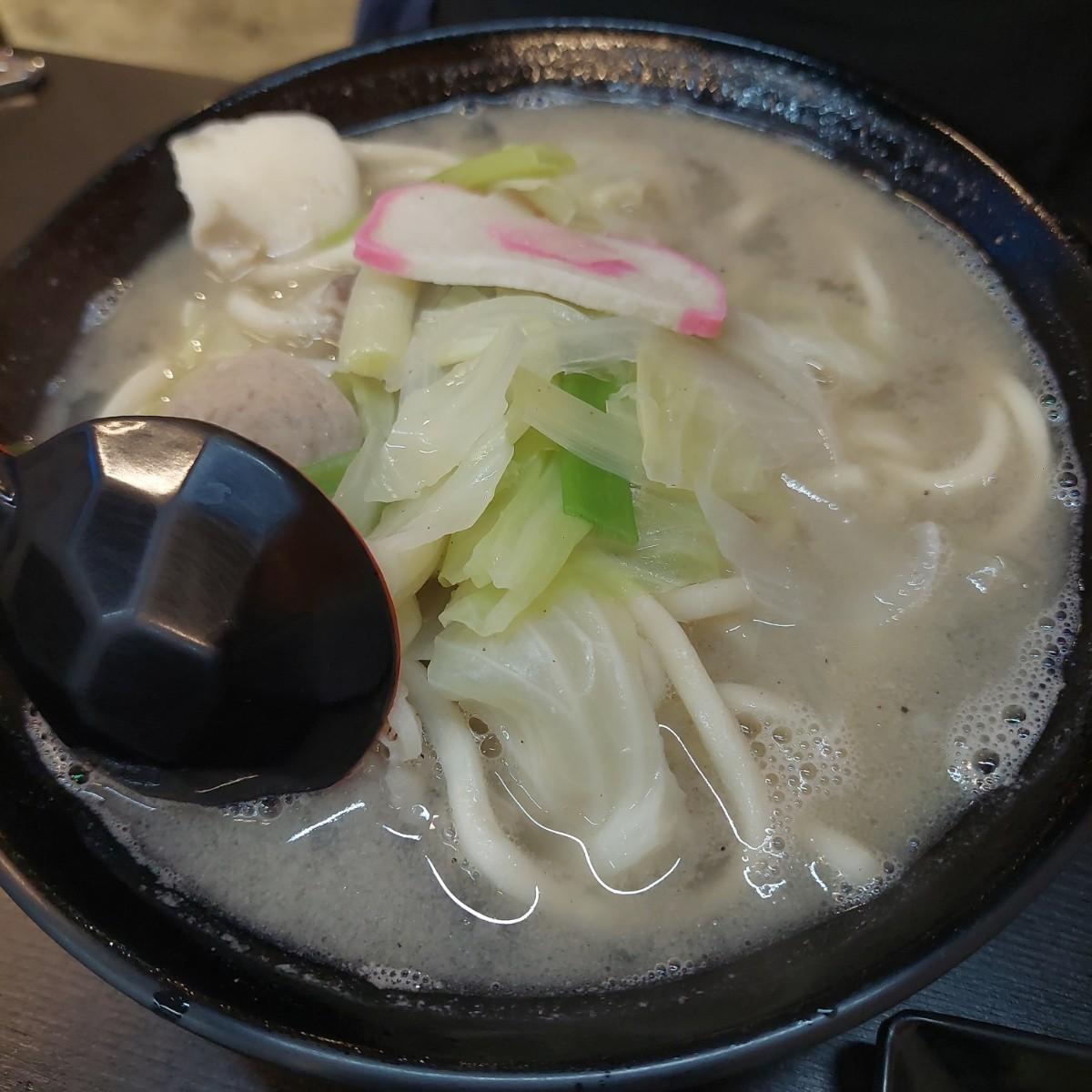 烏龍麵口感非常Q彈,湯底相對清淡,但並非淡而無味,而是相當舒服清爽順口的湯頭口感。