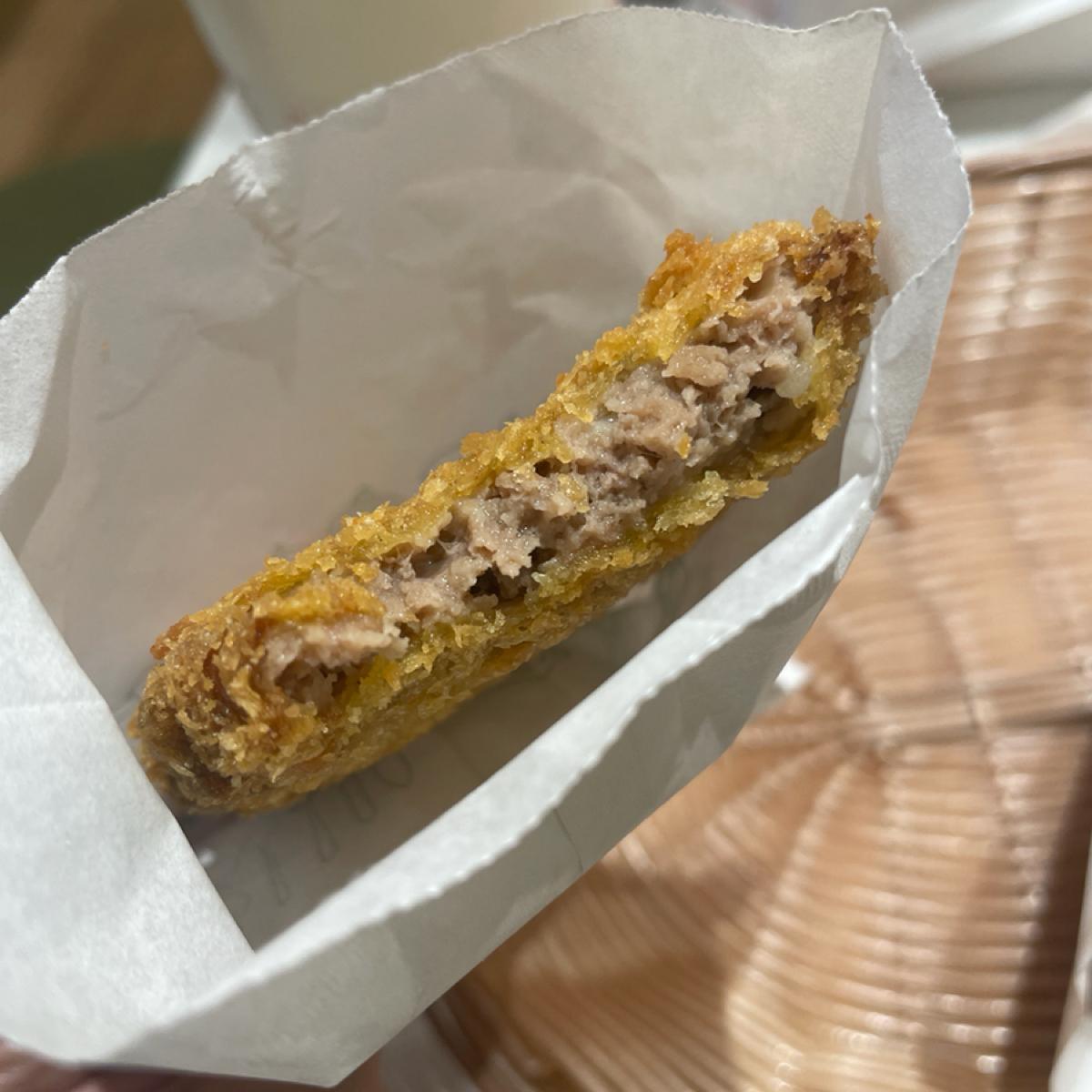 炸肉餅吃起來有點油膩,吃不太出來和牛和一般牛肉的差別,沾番茄醬吃意外蠻搭的,也有解膩效果