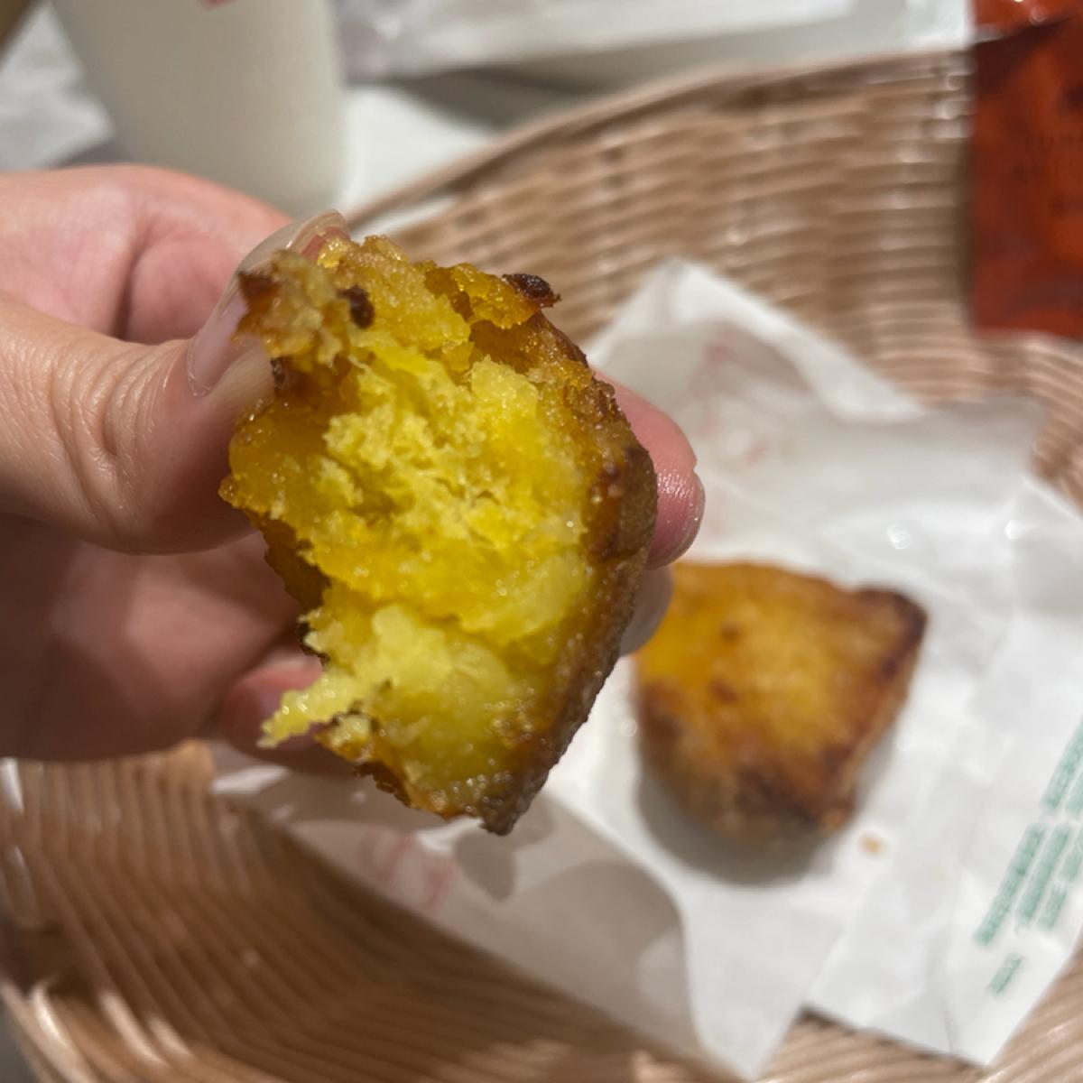 地瓜有3塊,炸得表皮微焦,吃起來超級軟,而且蠻甜的,好吃!(不過當然免不了也是有點油)