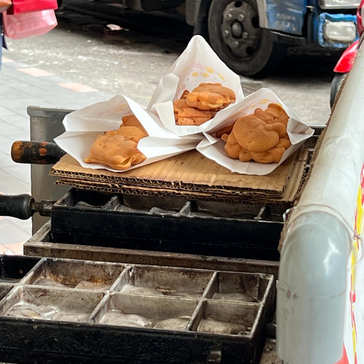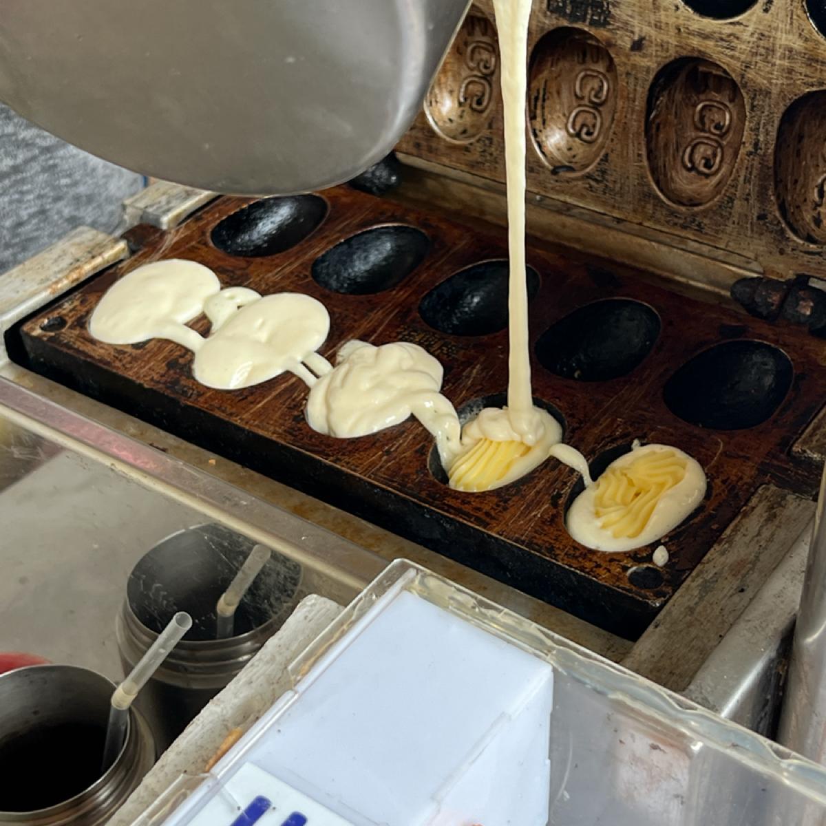 今天的點心還是位於基隆廟口夜市,這是一家到處擺攤的雞蛋糕攤販,雖然地址寫在彰化銀行附近,但它就是到處擺,所以沒遇到不可以檢舉🙃