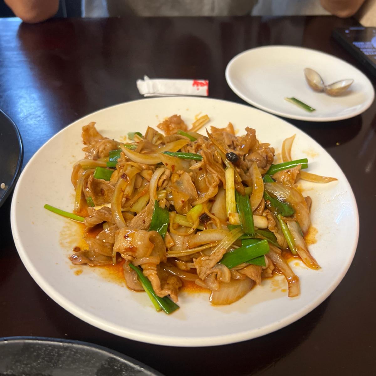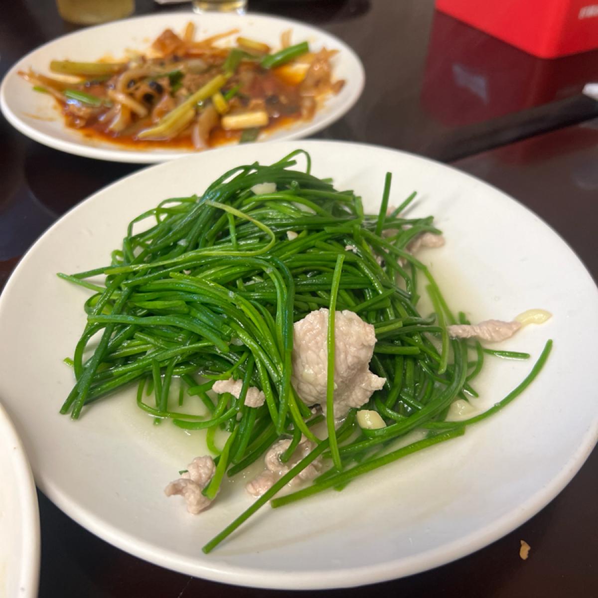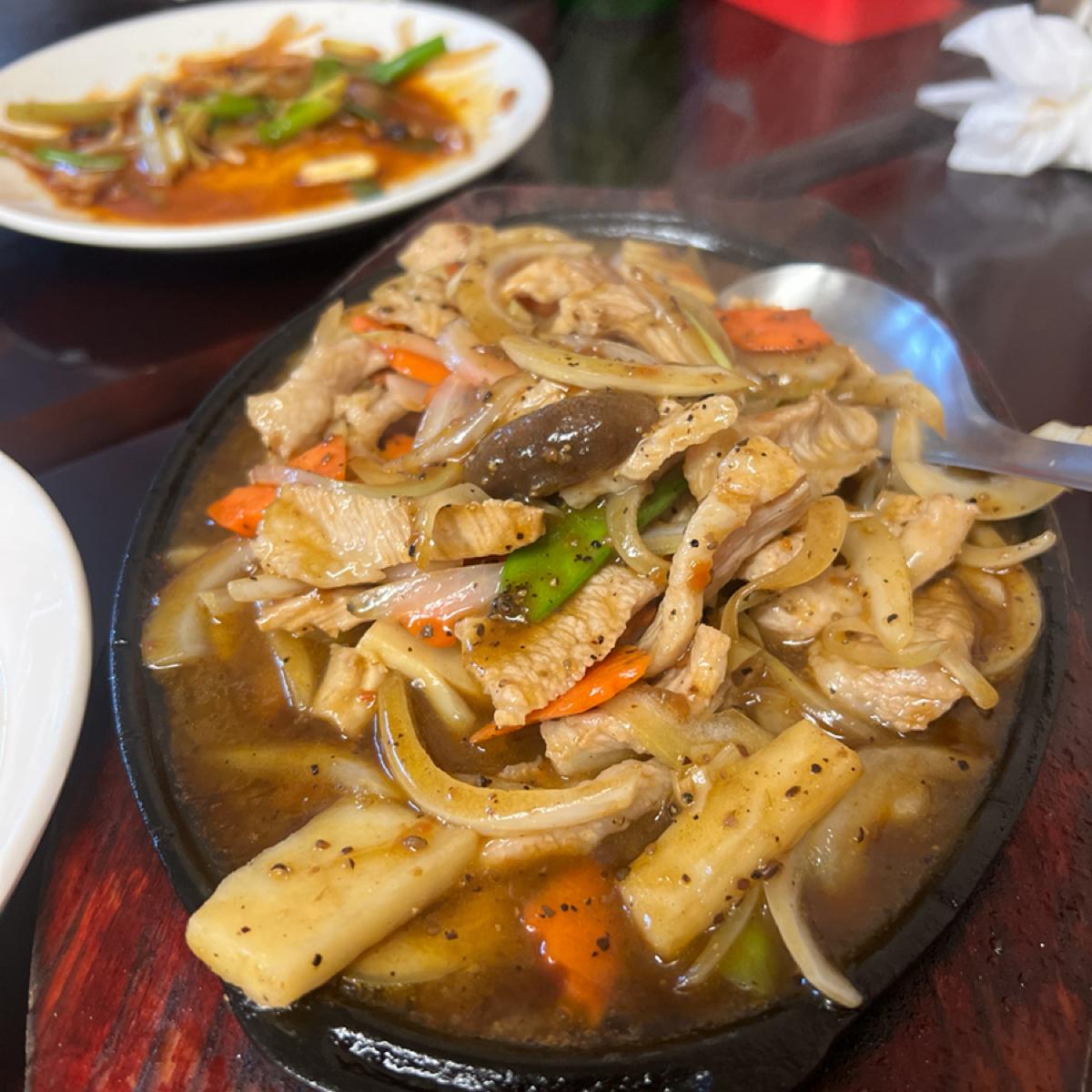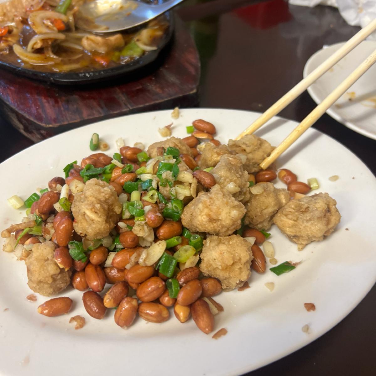 這次點選的菜色有炸龍珠、鐵板松阪、櫻花蝦炒飯、台式炒麵、辣炒山豬肉、薑絲炒大腸、塔香炒蛤蜊、菜脯蛋、櫻花高麗菜、炒水蓮、鳳梨蝦球、蔥爆牛肉、炒黑螺肉、剝皮辣椒雞~