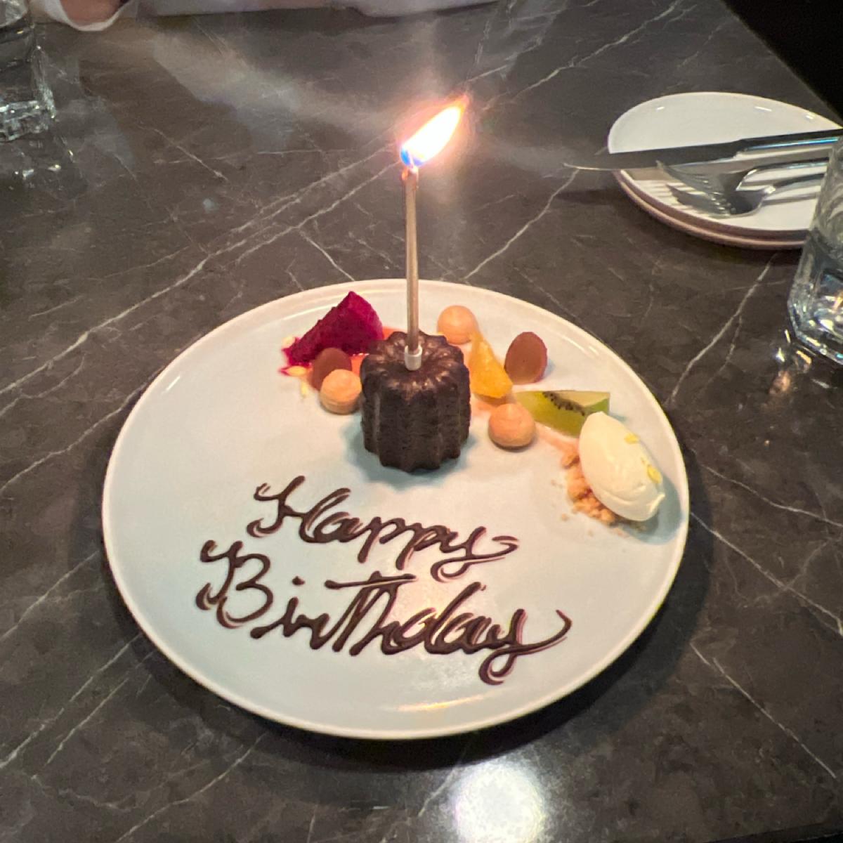 ·生日甜點:意外的不錯,擺盤精緻,可麗露口感還不錯皮脆內軟。