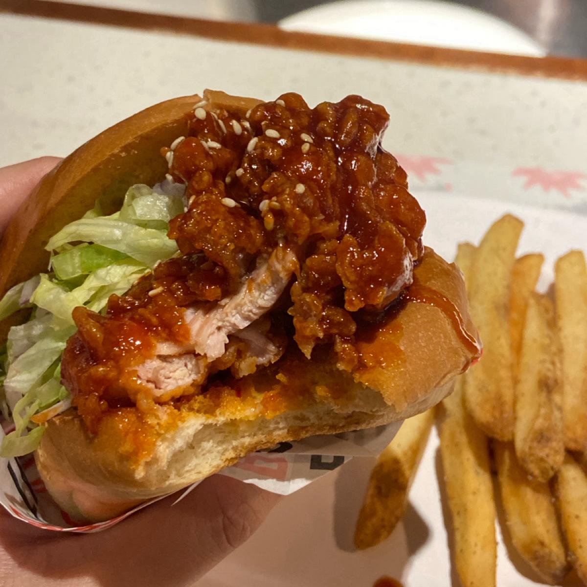 只有小辣,炸雞本身裹滿了辣椒醬甜甜辣辣的,儘管沾滿了醬汁依然不影響炸雞皮的脆度。漢堡裡還加了少量韓式泡菜,增加一點清爽的風味,可以中和甜膩的感覺。愛吃沾醬韓式炸雞的人放心的點下去,你一定會很愛!