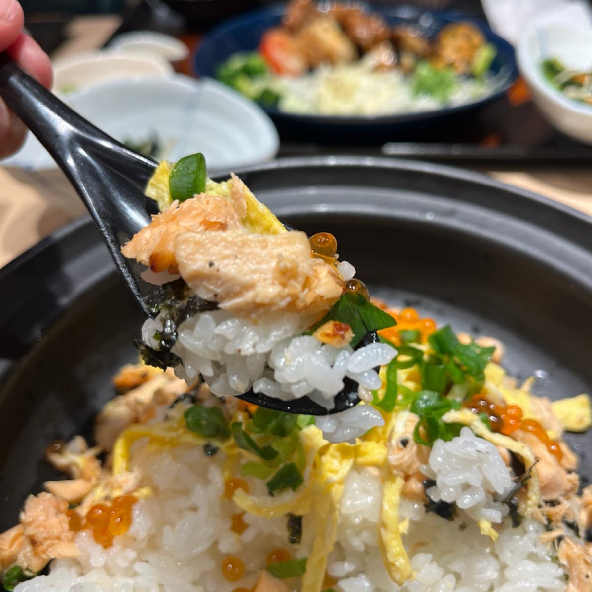 不得不說,鮭魚的熟度非常的剛好,沒有煮過久蛋白質硬化乾硬,也不是半生炙燒狀態,是熟度剛好的美味鮭魚。鮭魚卵的部分因為是醃漬物,單吃稍鹹,需要與鮭魚搭配。蛋絲與海苔的部分,提供香氣與不同口感,讓整體有層次。最後是醬汁部分,因為不是要做丼飯,醬汁淋的不多,反而是品嚐食材的原味,滿喜歡這道的。