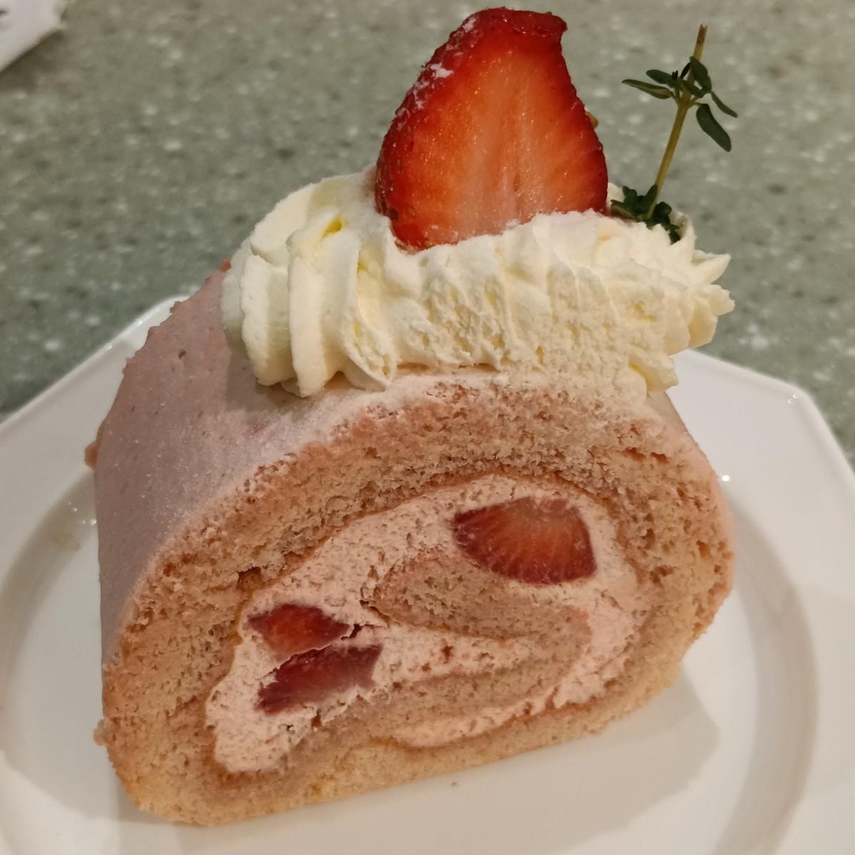 我點的是草苺生乳,上層是有一顆草苺,站在奶油螺旋,像是在安靜的氛圍裡原地不動,中間將三顆草苺給包圍起來,吃的每一口感覺蛋糕非常軟,搭配濃郁的草苺醬,真的可以當作享受很療癒的下午茶
