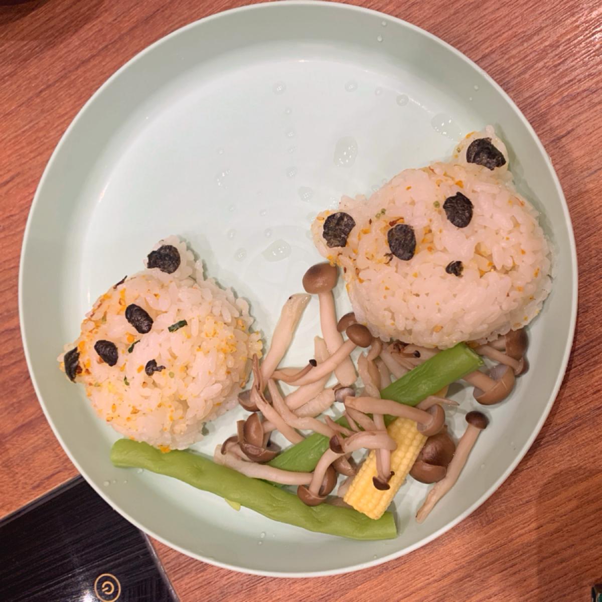 口味上我蠻喜歡季節鍋,濃濃的起司豆奶味,重點是它搭配是擔擔麵(一般鍋是白飯或豆腐二選一),擔擔麵還會有專人幫你煮跟調味,麵體普通但調味我蠻喜歡😘肉的品質就不用多說,日本和牛口感是我喜歡的軟嫩,和牛油脂也不會太多,一般鍋底涮幾下(肉變粉嫩色就要趕快撈起)就很好吃,搭配壽喜燒生蛋液滑嫩度爆表,我更喜歡壽喜燒煮的肉質。女兒也很喜歡招待的兒童盤(那熊貓造型飯小朋友應該沒人不愛)。