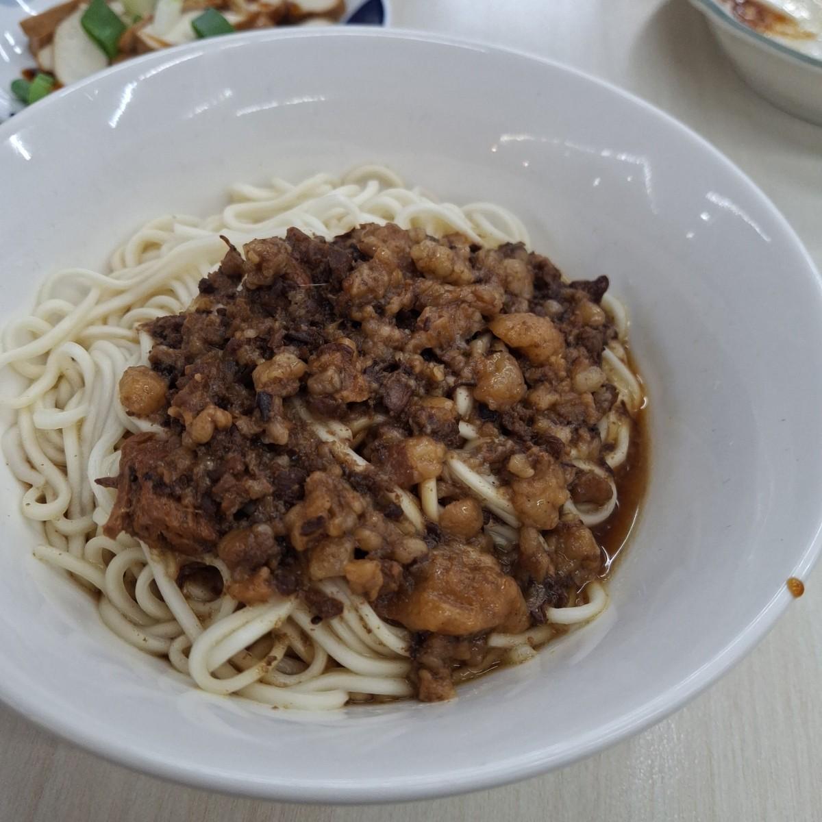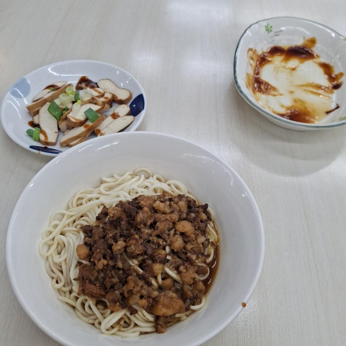 乾麵的麵條是我喜歡的硬度,不會煮太爛,上面有些許的碎肉,肥肉的部分滷得很剛好,入口即化。