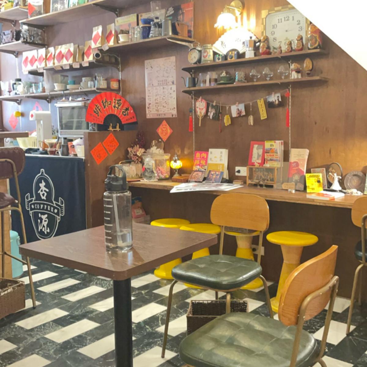 這是一間位於小巷弄裡的中藥行咖啡廳,為什麼說是中藥行呢?因為前身是「杏源嵾藥行」,被老闆和老闆娘買下來之後開了咖啡廳,這邊有賣青草美式和保力達美式,很特別!店內擺設的中藥櫃裡放著的居然是濾掛咖啡包,別具特色~