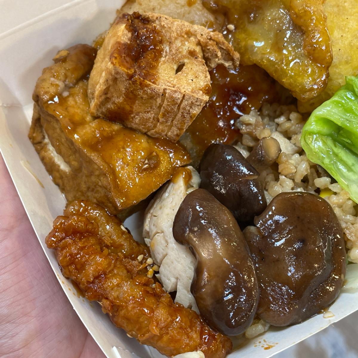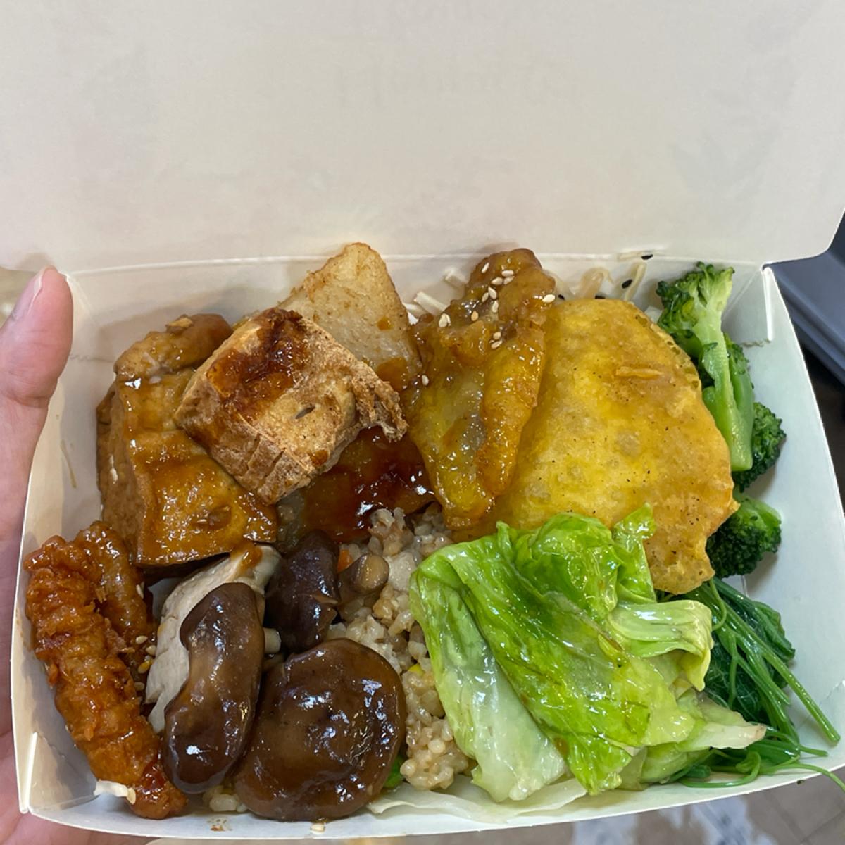 我覺得自己是一個正常偏大一點食量的女生,這樣滿滿一個便當盒,沒有另外加點白飯,吃完覺得蠻有飽足感的,可能因為我夾了蠻多澱粉製品😂而且幾乎每一樣菜色都好吃耶,沒有踩雷的!