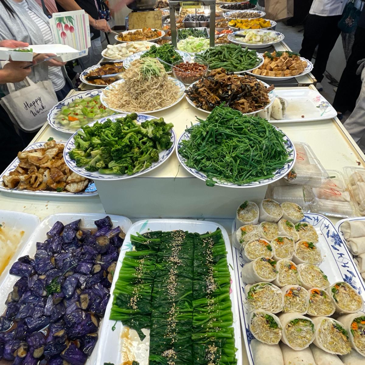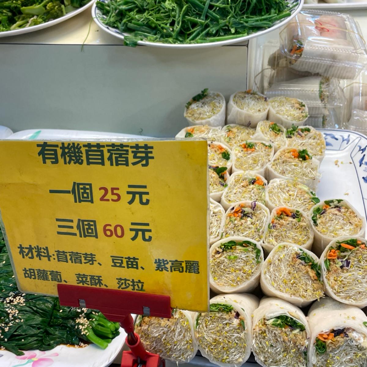 這裡主要採秤重計價,儘管夾自己想吃的品項,夾多夾少都可以~ 不過也有部分品項是有單價的,例如春捲和有機苜蓿芽捲都是1個$25及3個$60、割包$55、麻辣臭豆腐$65、素便當$85