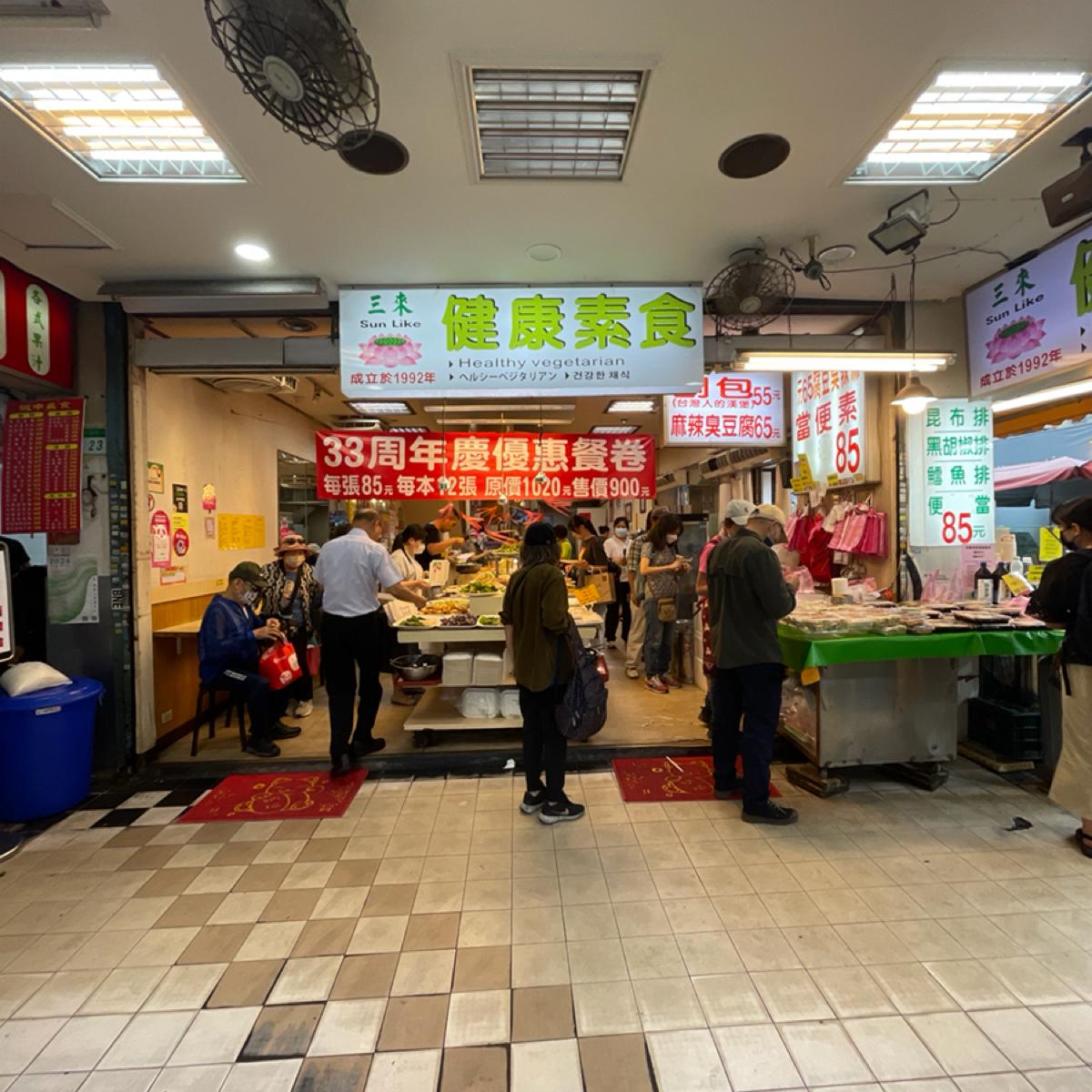 今天午餐不想吃肉,所以來吃素食自助餐!這家「三來素食館」位於城中市場附近,距離台北車站、西門站、台大醫院站走路都大約10分鐘,平日中午用餐時段客人蠻多的