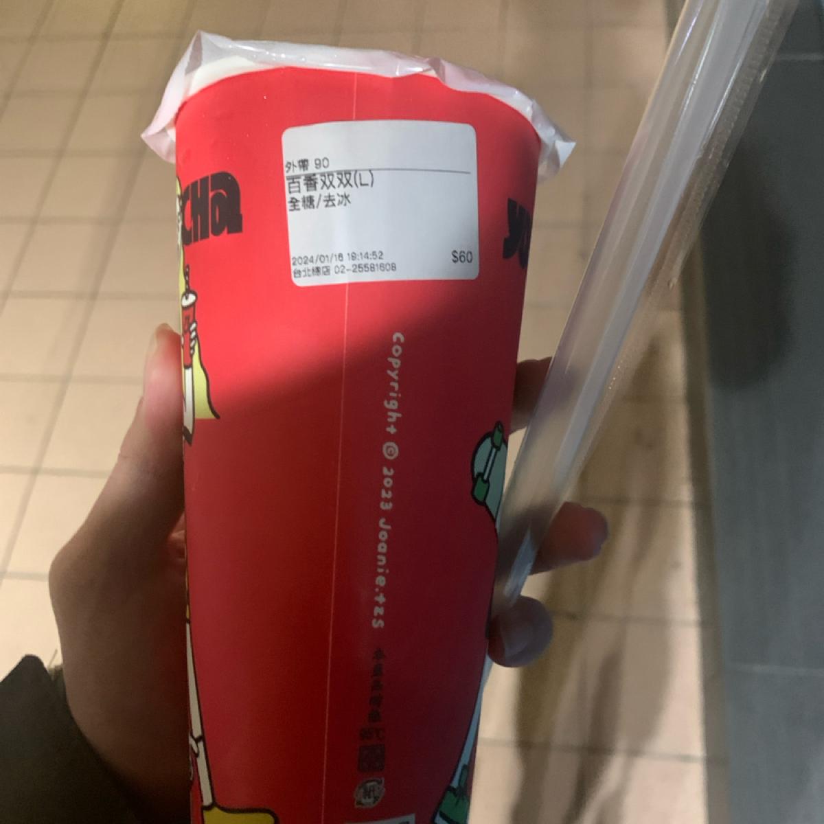 一家在地下街Y區出口的飲料店,門口對面就有個小公園,這次點了一杯百香双双,類似於其他手搖店的百香雙Q,在百香綠中加椰果跟珍珠,酸甜中可以吃到Q彈的料很讚,另外這家店很多飲料品項名稱都蠻特別的,在點餐前可以看一下菜單下都有寫裡面到底是什麼