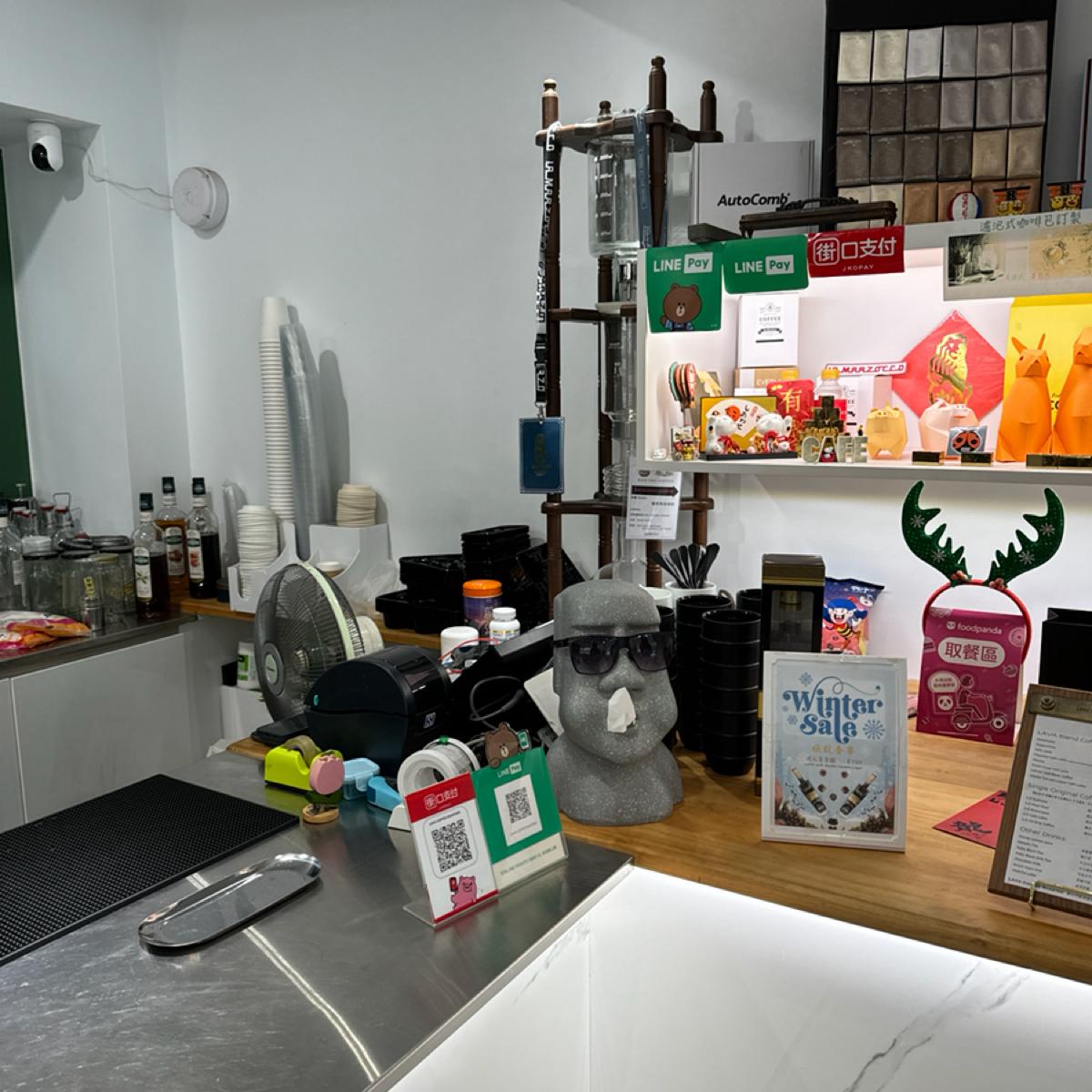 店內座位不多,可以看到專業的烘豆設備,老闆有販售現烘的咖啡豆,同事最後有找老闆小聊了一下咖啡豆的挑選,感覺是非常咖啡熱忱、對於咖啡知識的了解很豐厚的老闆