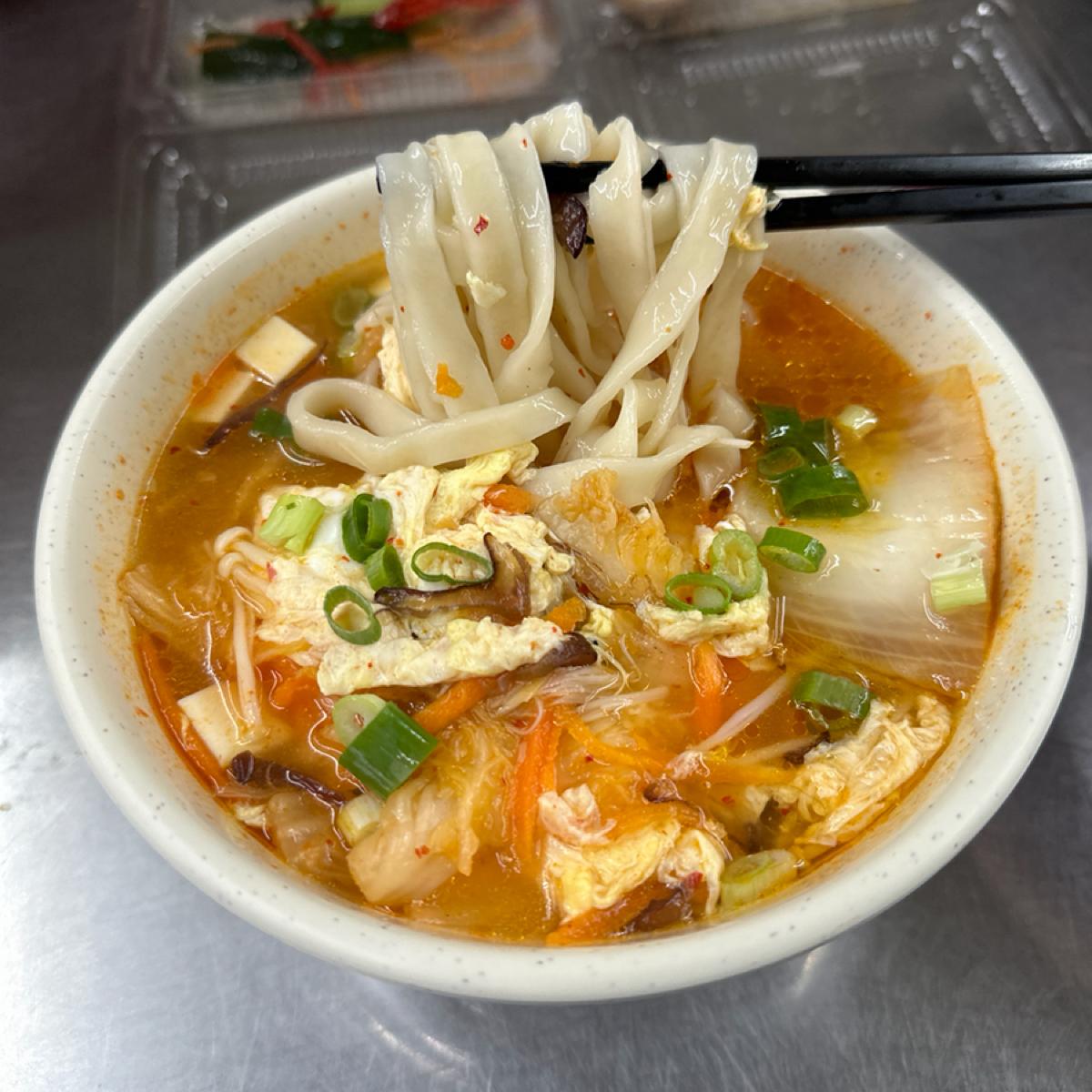 ✅大滷麵疙瘩:湯底類似酸辣湯,不過喝起來更為清爽。裡面有木耳、蛋、紅蘿蔔、香菜等食材。疙瘩吃起來蠻有勁道的。