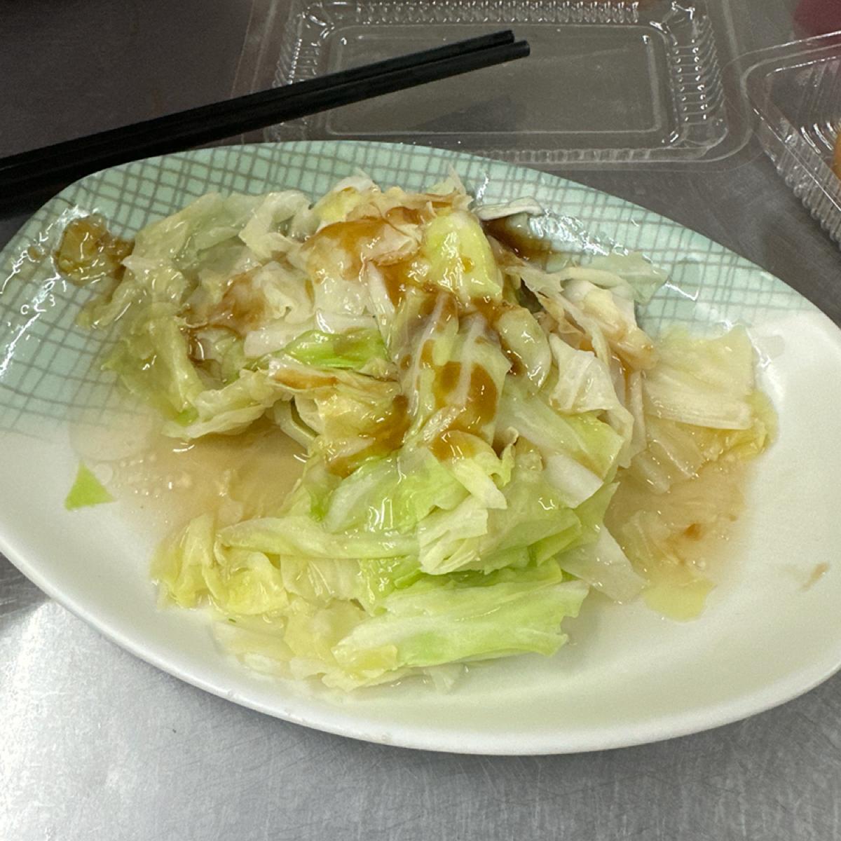 ✅燙青菜:店家是提供高麗菜,簡單的用水輕煮再加上醬油調味。不過這份量搭配這價錢是稍貴了點。
