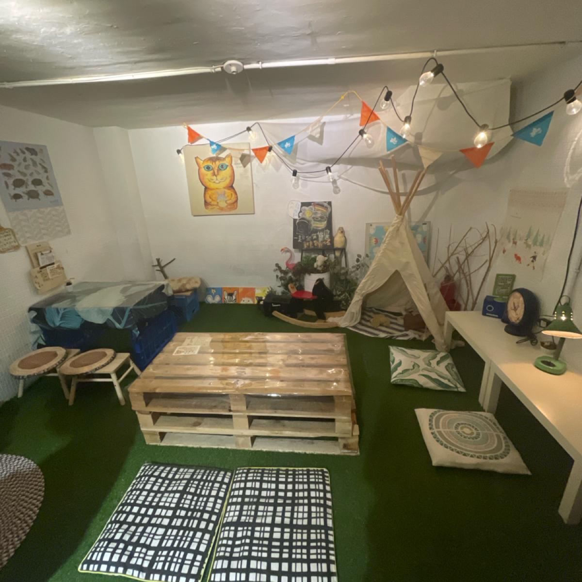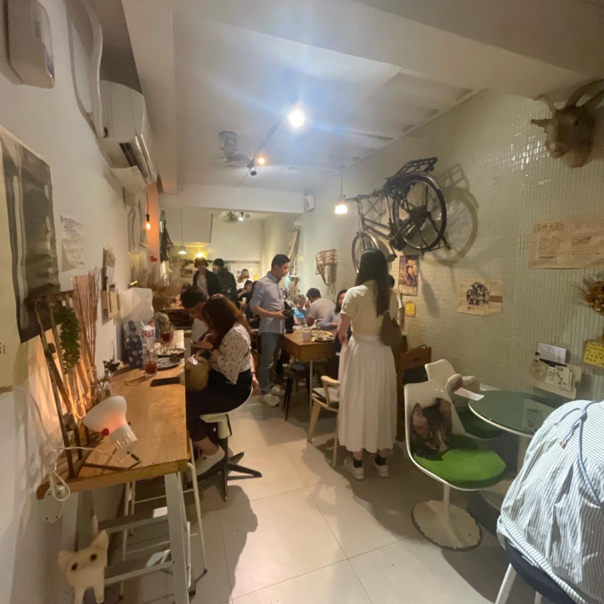 1樓主要是餐點製作區,只有一排吧台座位,主要用餐區在B1,走下樓梯後真的可用別有洞天來形容,座位數很多,整體佈置很藝術,走一個文青風,還有一區是可以席地而坐的,很可愛~