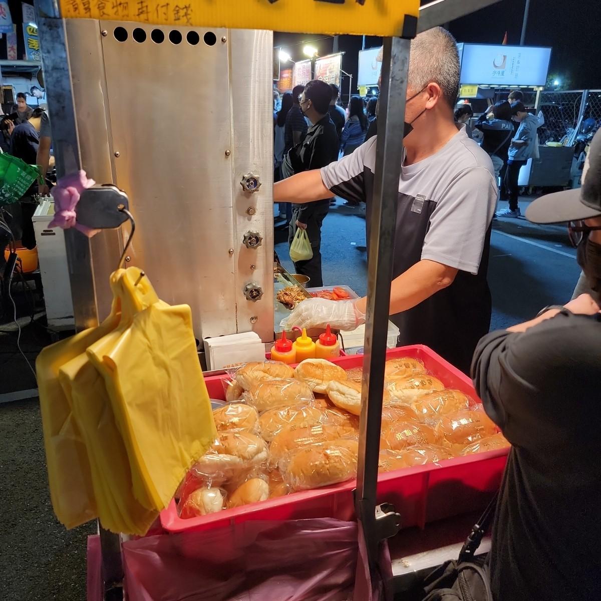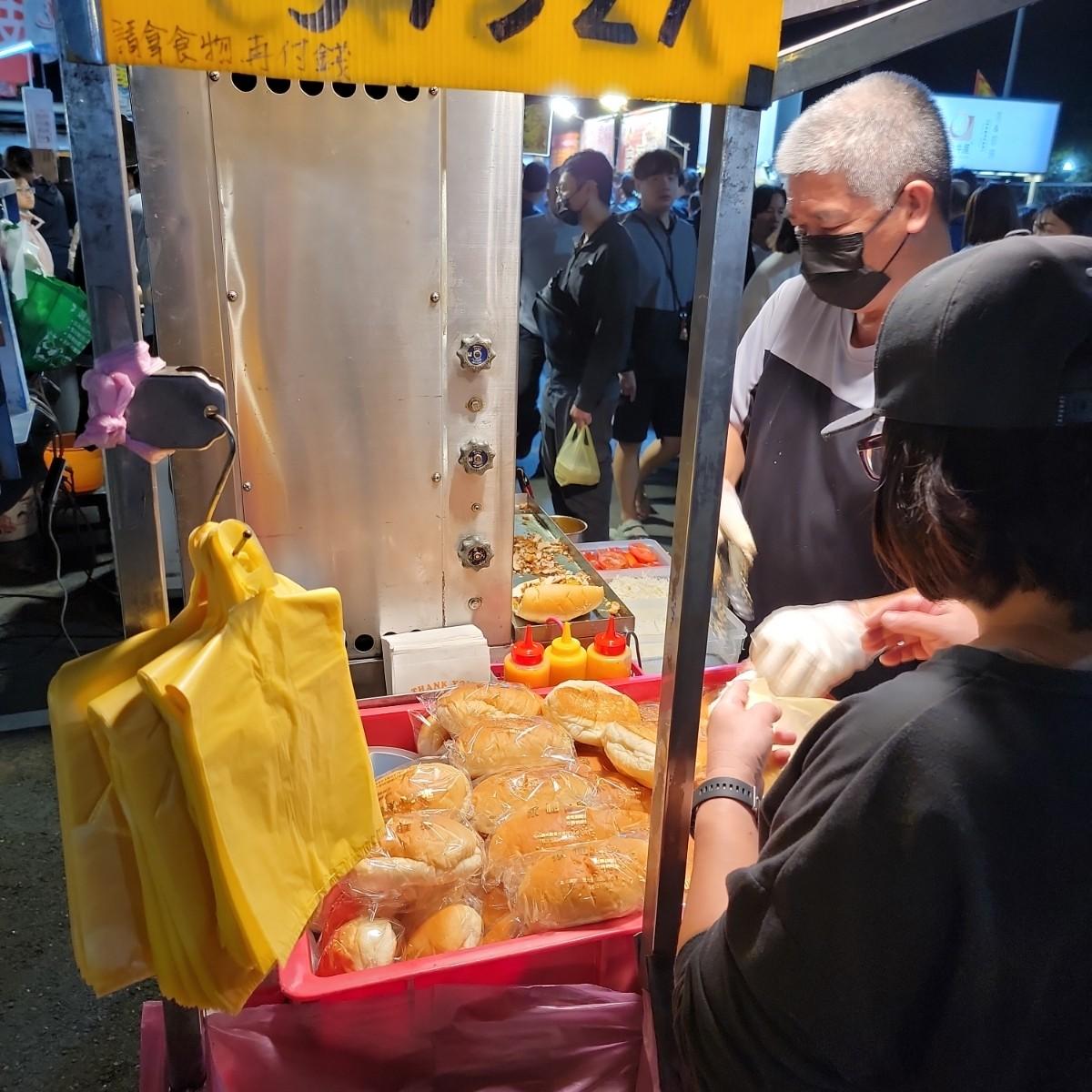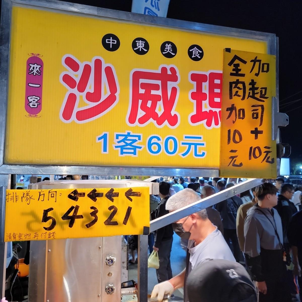 超級多人的夜市,沙威瑪也是很多人喜歡的餐點之一,簡單的黃色招牌搭配旋轉烤肉串,看著老闆從上面切下肉片然後拿著麵包稍微烤一下;相信是很多人兒時回憶。