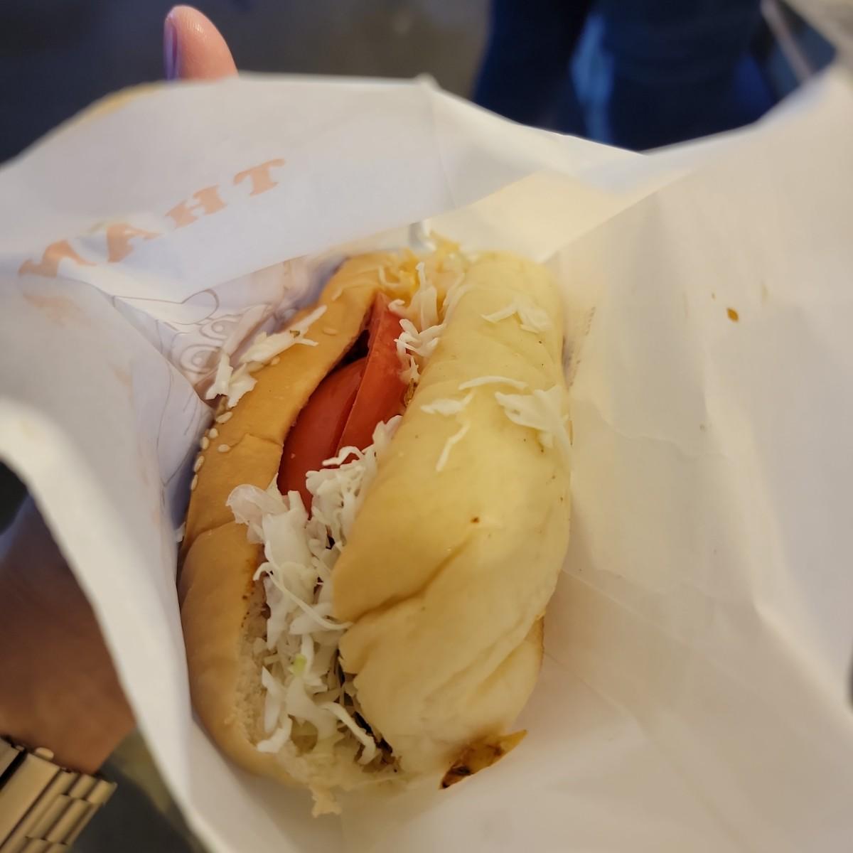 基本上應該很少沙威瑪是難吃的,畢竟也沒啥調味,內容物就是麵包簡單的生菜配上切片番茄、醬料跟豬肉片而已,這家算是搭配的不錯,麵包也有熱