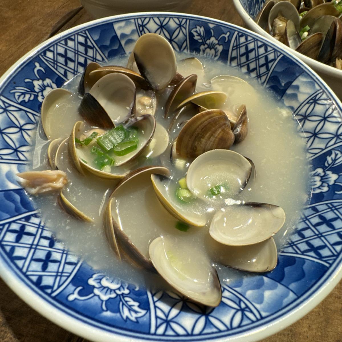 -燒酒痛風蛤蜊湯-100-蛤蜊本身的品質普通,沒有特別大顆。湯頭主要還是它們家高湯的味道,蛤蜊味些許而已。自助區有提供米酒可以做使用,建議可以加讓湯頭更有層次