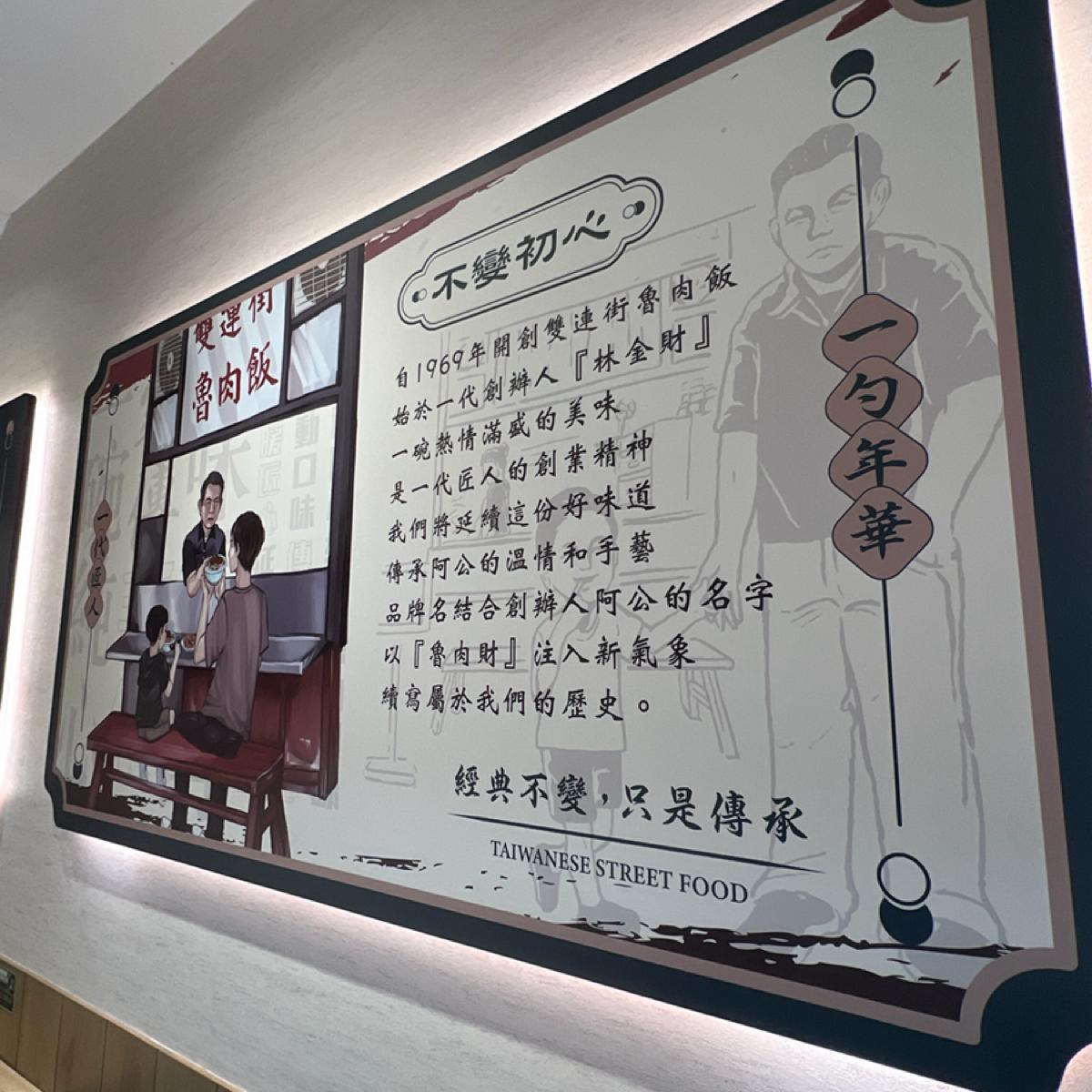 民國五十八年八月,創始人「林金財」先生,在雙連街2號旁的大榕樹下,擺著攤車賣起了魯肉飯。 沒有招牌,只有幾張桌椅,都憑著一鍋香氣四溢的魯肉,贏得街坊鄰居的喜愛。 鄰居們因為熟識,不想直呼全名,便以魯肉飯加上他的名字,喊他「魯肉財」 這樣的稱呼,一喊就是幾十年,漸漸成了大家心中的記憶與味道,也成為我們今天延續的精神。 從攤車到店面,從無名小攤到雙連街魯肉飯,如今「魯肉財」不僅是店名,更是一份傳承。