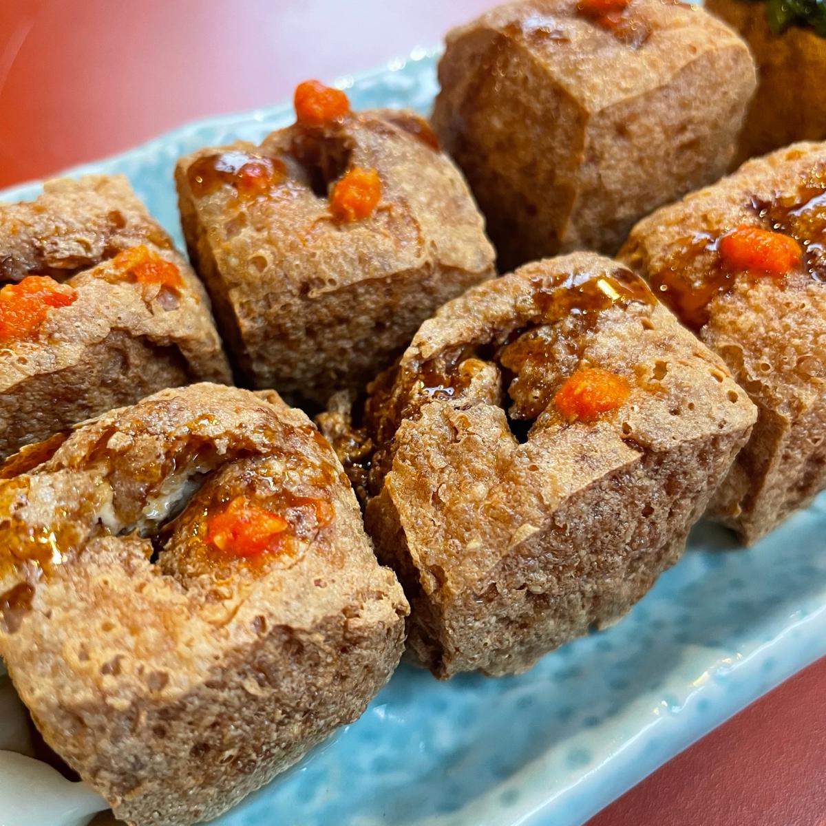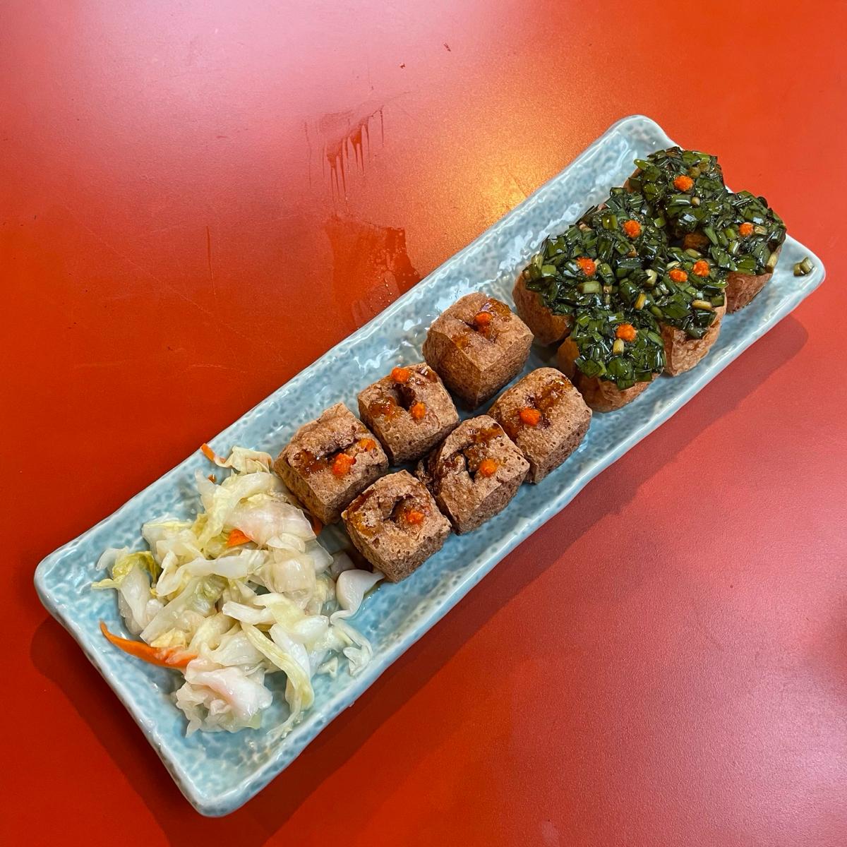 整份臭豆腐擺得整整齊齊,如果加辣的話,會在臭豆腐上放一點辣醬,個人覺得超適合拍照的,不愛盤很漂亮~