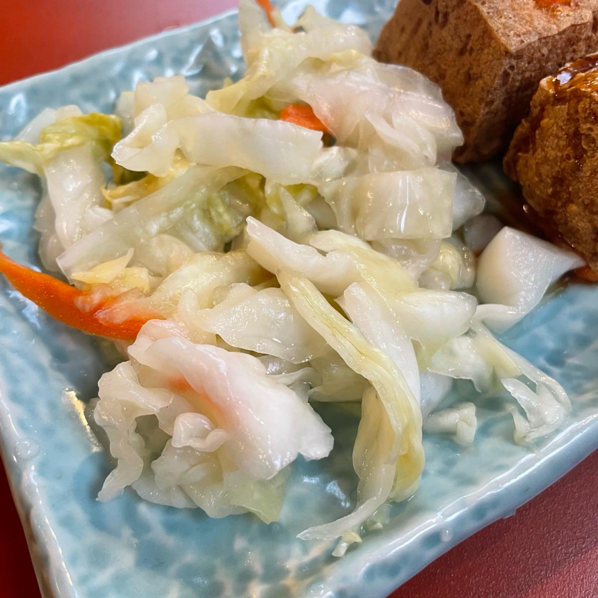 臭豆腐不會太臭,炸的酥度還行,不會刮口,泡菜也酸度夠,清爽好吃,一口臭豆腐一口泡菜剛剛好