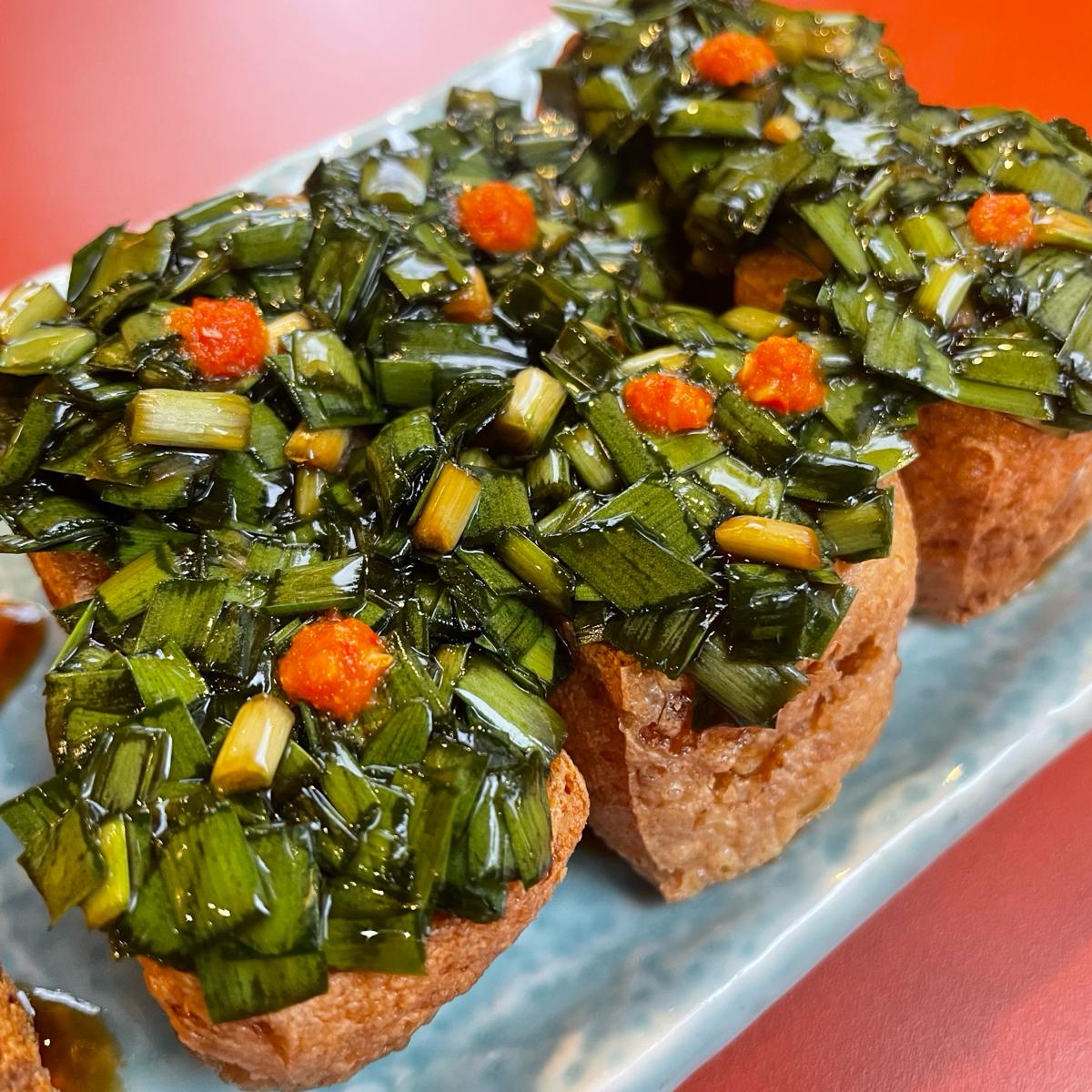 韭醬臭豆腐上面是滿滿滿的韭菜,沒想到韭菜跟臭豆腐這麼搭,臭臭組合,吃起來爽度很夠,蠻特別的搭配~