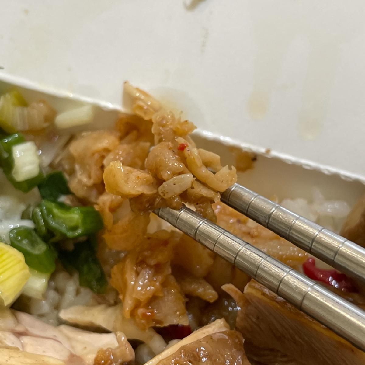 🔹便當都有附上油蔥跟辣菜脯,油蔥沒什麼蔥的香氣且很油膩。辣菜脯整的很死鹹且過辣。