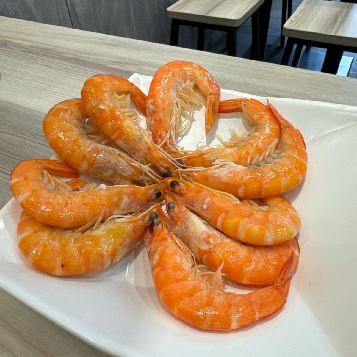 -海南鮮蝦冷盤-130-蝦子就一般川燙過後的冰鎮白蝦,大小一般,單吃沒什麼味道,主要要搭配它的醬料使用才比較有味道。