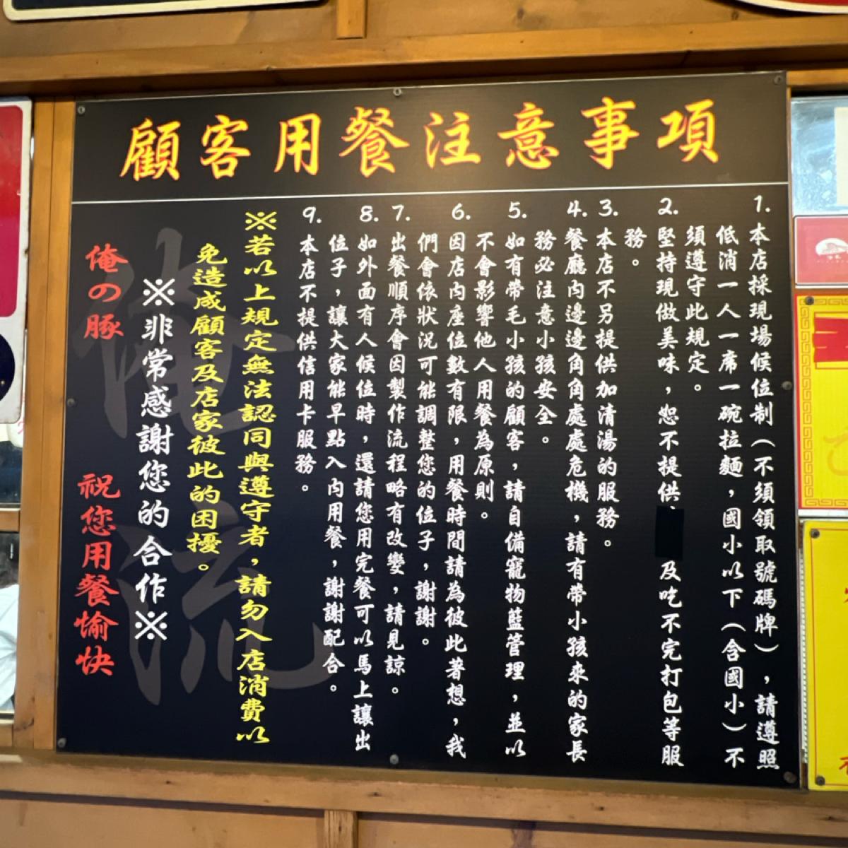 這間店都只能現場排隊,所以要嘛就早點來,要嘛就挑冷門時段或下雨天。其實店內的規則還滿多的,什麼不能外帶呀、一人一定要點一碗麵(我只想吃叉燒飯不行!?)、吃完要儘快走啊。反正拉麵店常見的一些規矩他們應該都有。