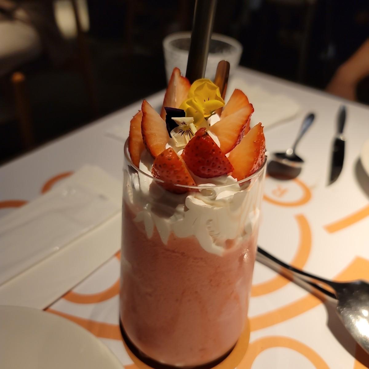 草莓冰沙 喝起來有點優格冰沙的感覺,濃郁順口,有種像大苑子的草莓冰沙的感覺?