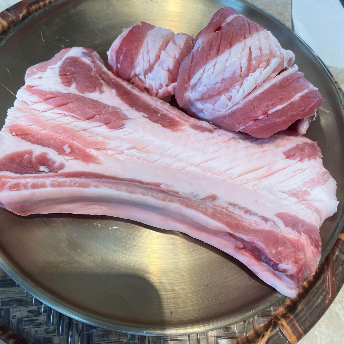 店員推薦我們點基本肉類,就是720的豬頸肉和五花肉,一份都200g,價格是₩22000,我們還另外點了960帶骨肉,一份是300g,價格是₩36000