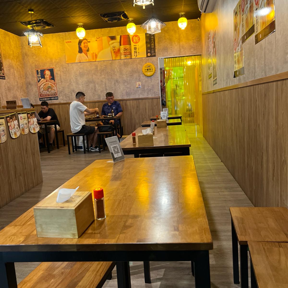 內用的環境風格是日式,桌位都是以四人為一個單位,空間算空曠明亮,但桌位以四個男生來說有點擁擠~