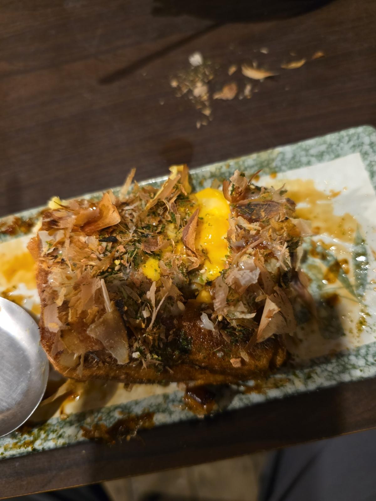 有點類似大阪燒,外觀則是做成長方形油豆腐的樣子。