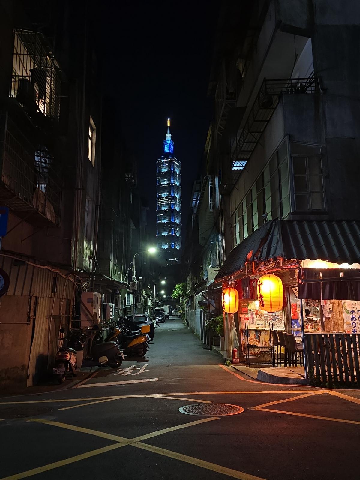 竹村居酒屋位於松仁路253巷內,店門巷口一抬頭就是台北101,光這片夜景就已經讓人覺得值回票價了。